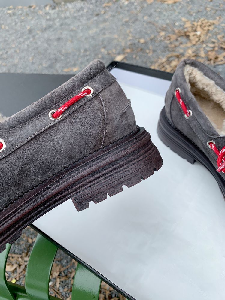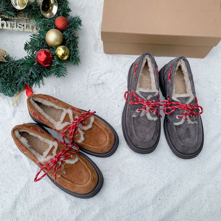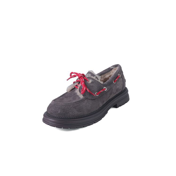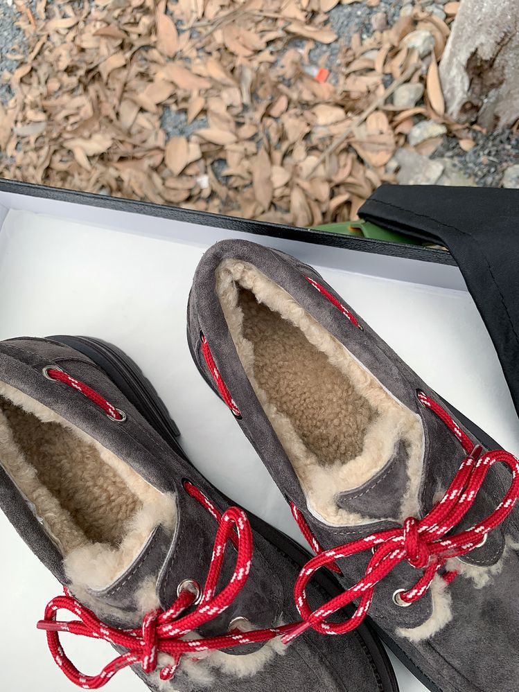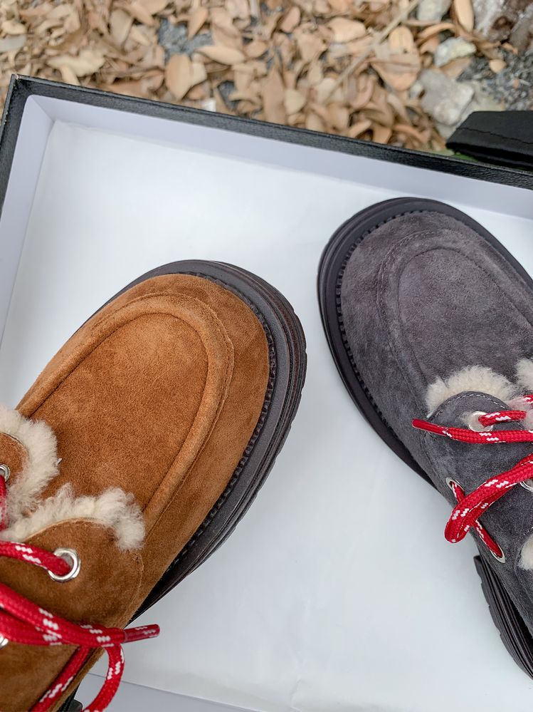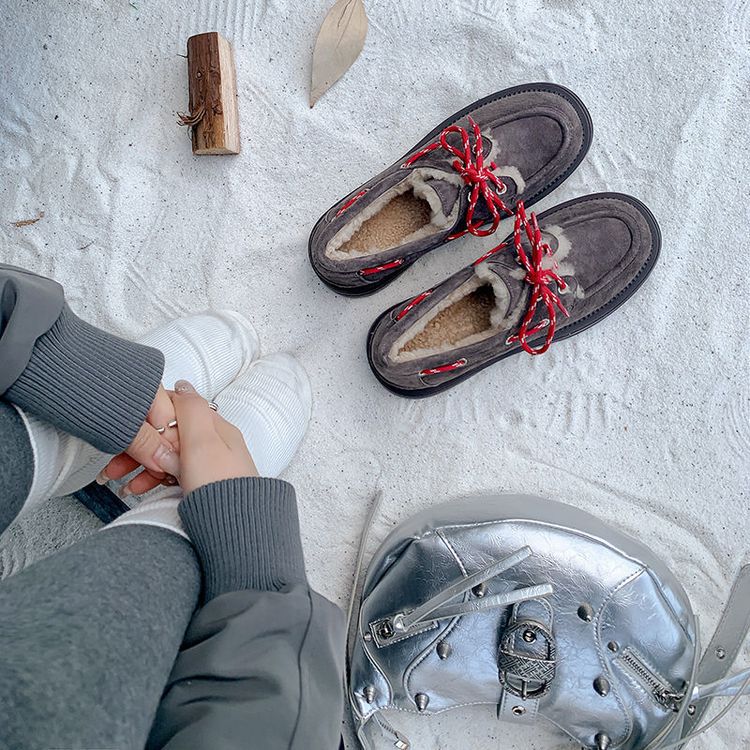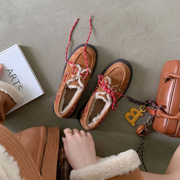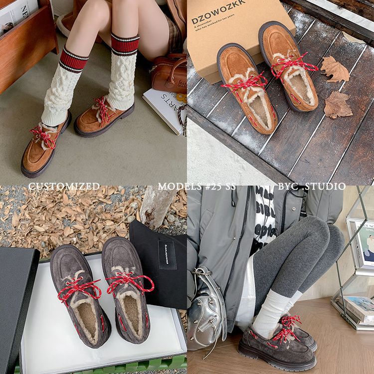 정품 가죽 따뜻한 양고기 양모 플랫폼 신발 여성 싱글 레이어 신발 가을 및 겨울 새로운 라운드 토 두꺼운 싱글 힐 미드 힐 레이스 업 여성용 딥 입 싱글 레이어 신발스토어 가기
