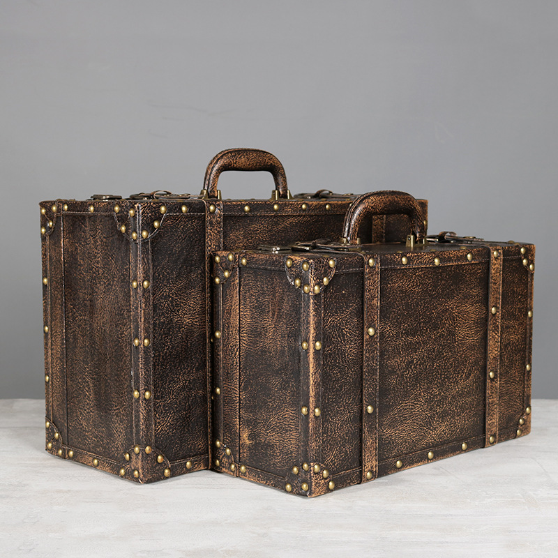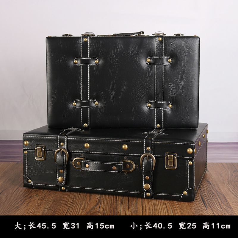 유럽식 레트로 다크 브라운 가방 보관 나무 케이스 의류 보관 케이스 구식 가방 사진 소품 전체 반환 Qiang