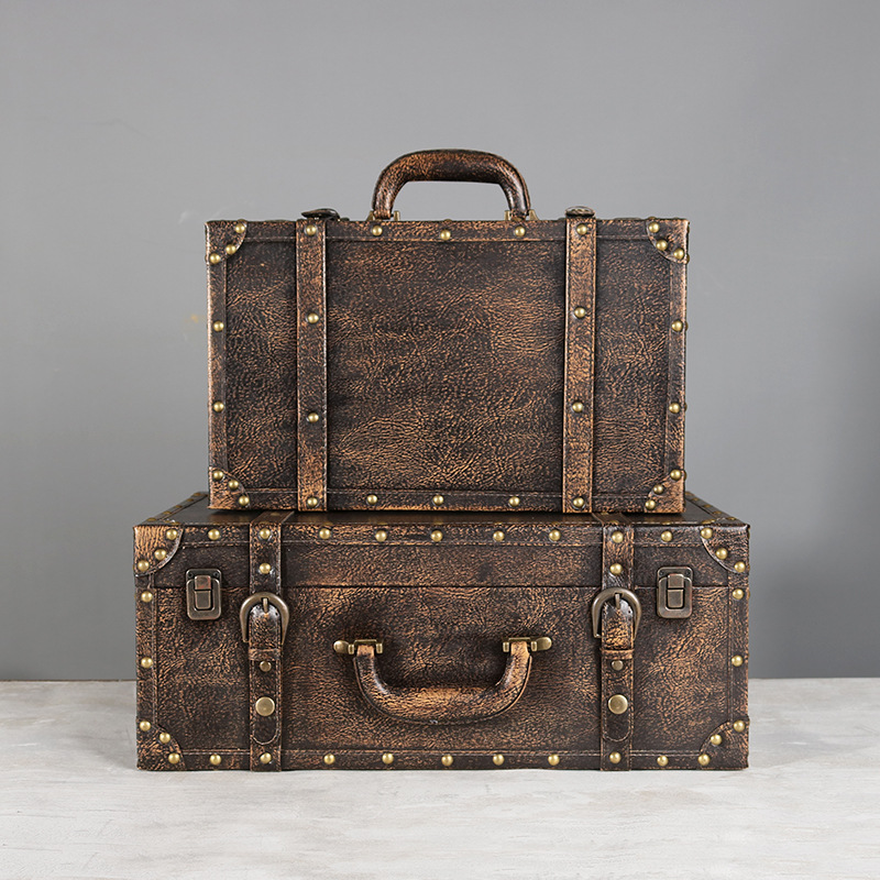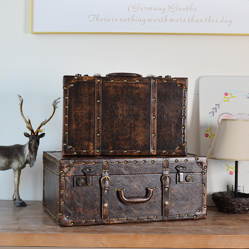 유럽식 레트로 다크 브라운 가방 보관 나무 케이스 의류 보관 케이스 구식 가방 사진 소품 전체 반환 Qiang스토어 가기