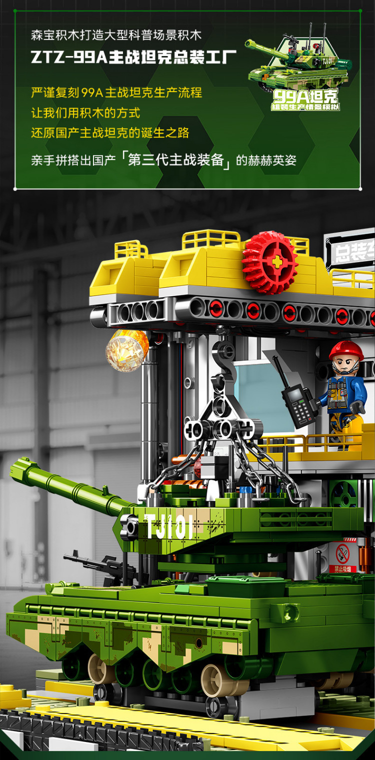 Senbao 203189 빌딩 블록 99A 주요 전투 탱크 조립 공장 장면 어린이 퍼즐 빌딩 블록 군사 장난감 선물스토어 가기