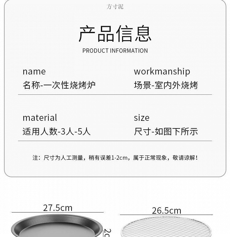 일회용 BBQ 그릴 작은 가정용 그릴 피크닉 캠핑 휴대용 바베큐 숯 스토브 과일 숯 상업 대외 무역스토어 가기