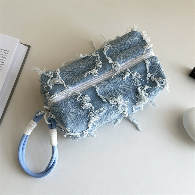 • 데님 태슬 플라워 베개백을 들고 다니는 모습
