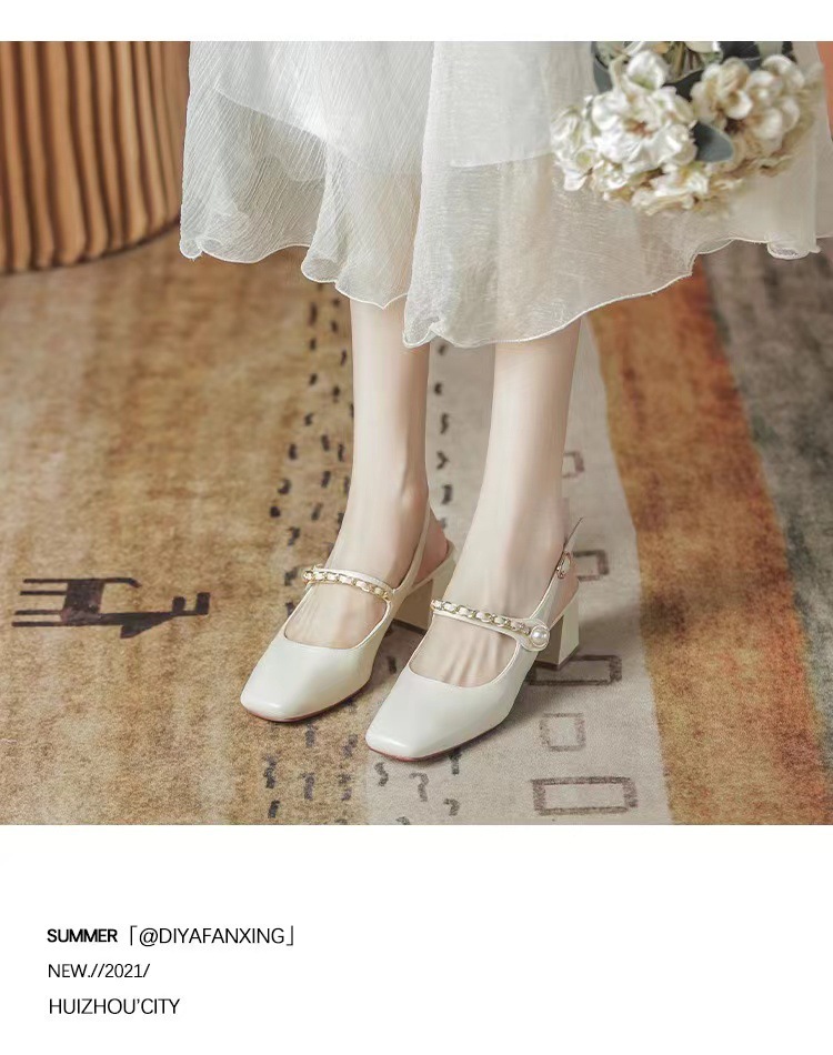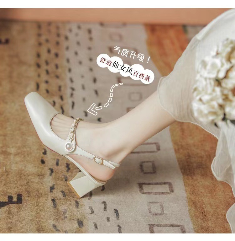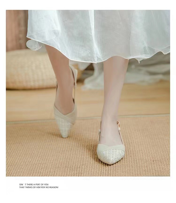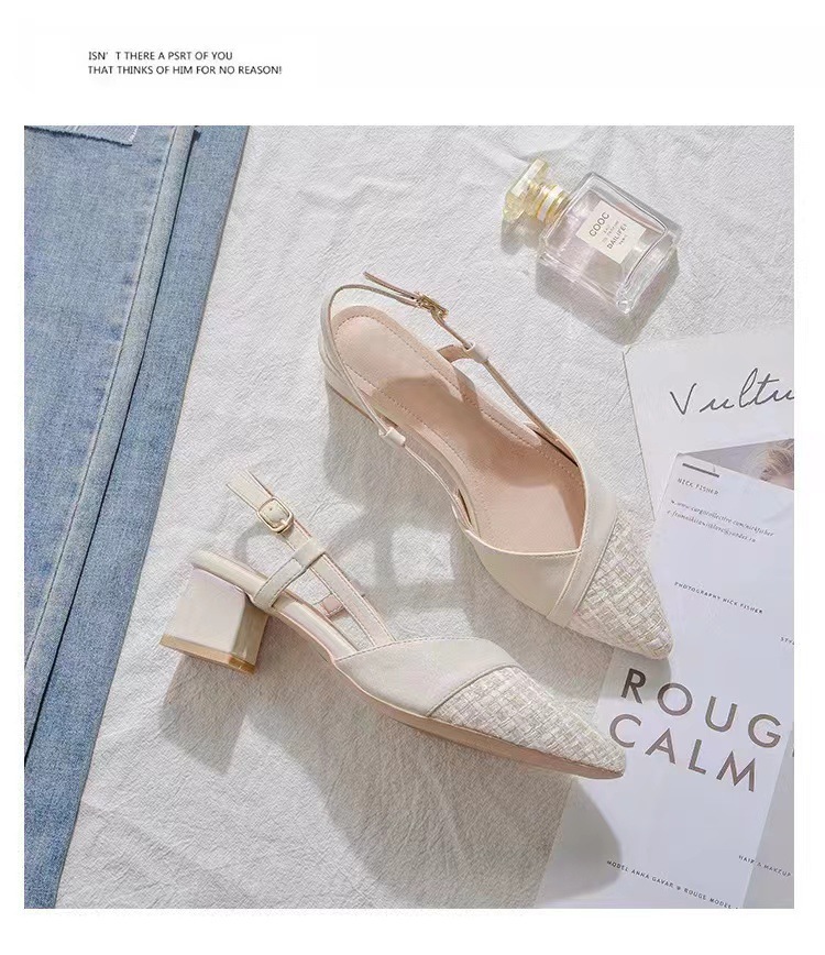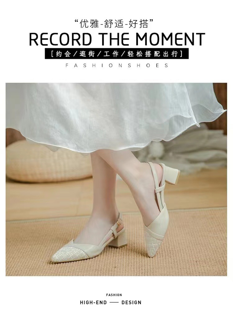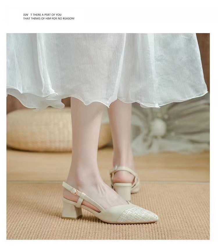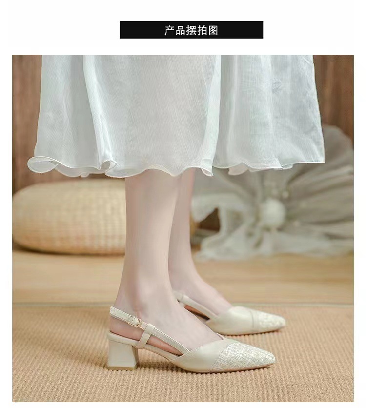2025 여름 오픈백 통굽 하이힐 샌들, 인터넷 인기, 스커트와 잘 어울리는, 세련된, 뾰족코 여성화, 통굽 슈즈스토어 가기