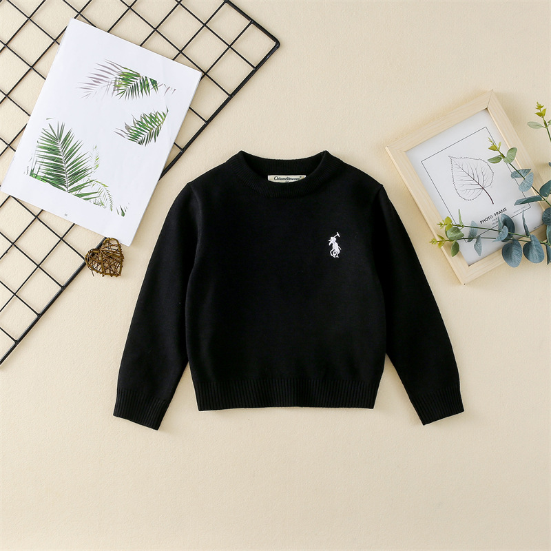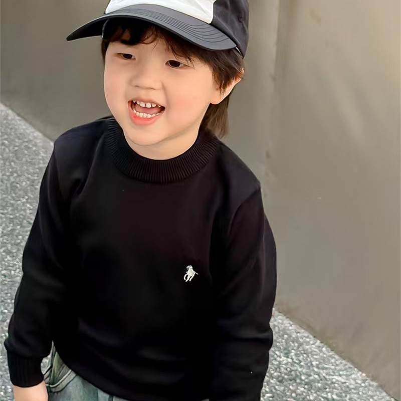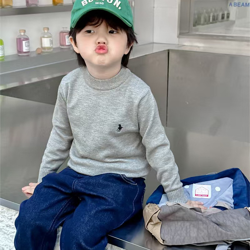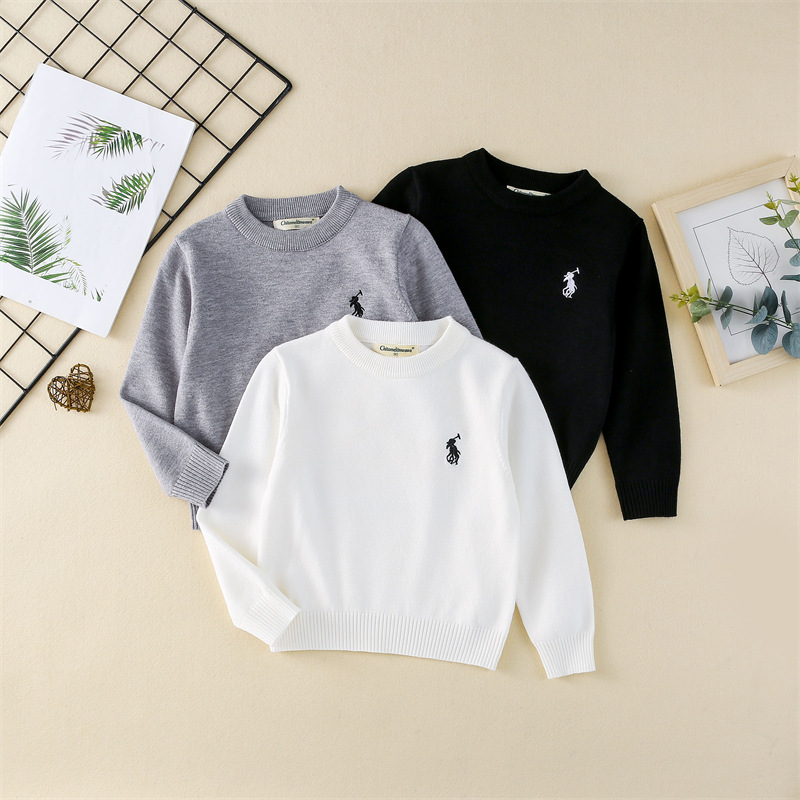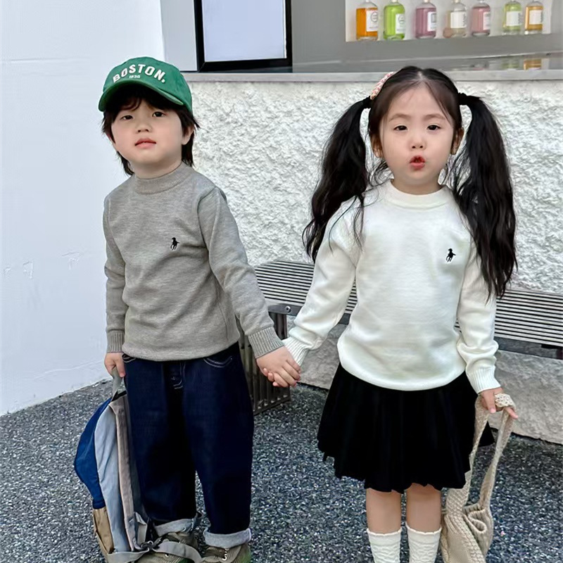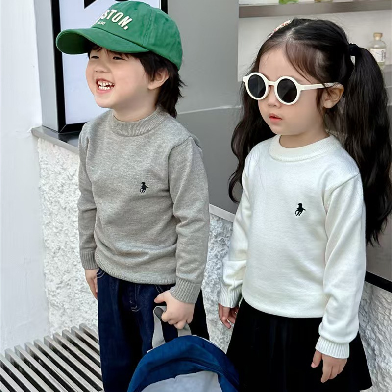 가을과 겨울 어린이 스웨터 아동복 니트 풀오버 긴팔 베이스 셔츠 남녀 아기 자수 말 울 따뜻한 옷