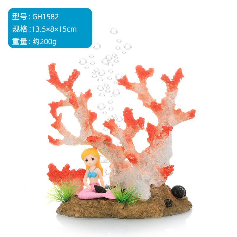 물고기 탱크 풍경 인어 시뮬레이션 산호초 바위 장식 물 잔디 바다 물 탱크 세트 수족관 조합스토어 가기