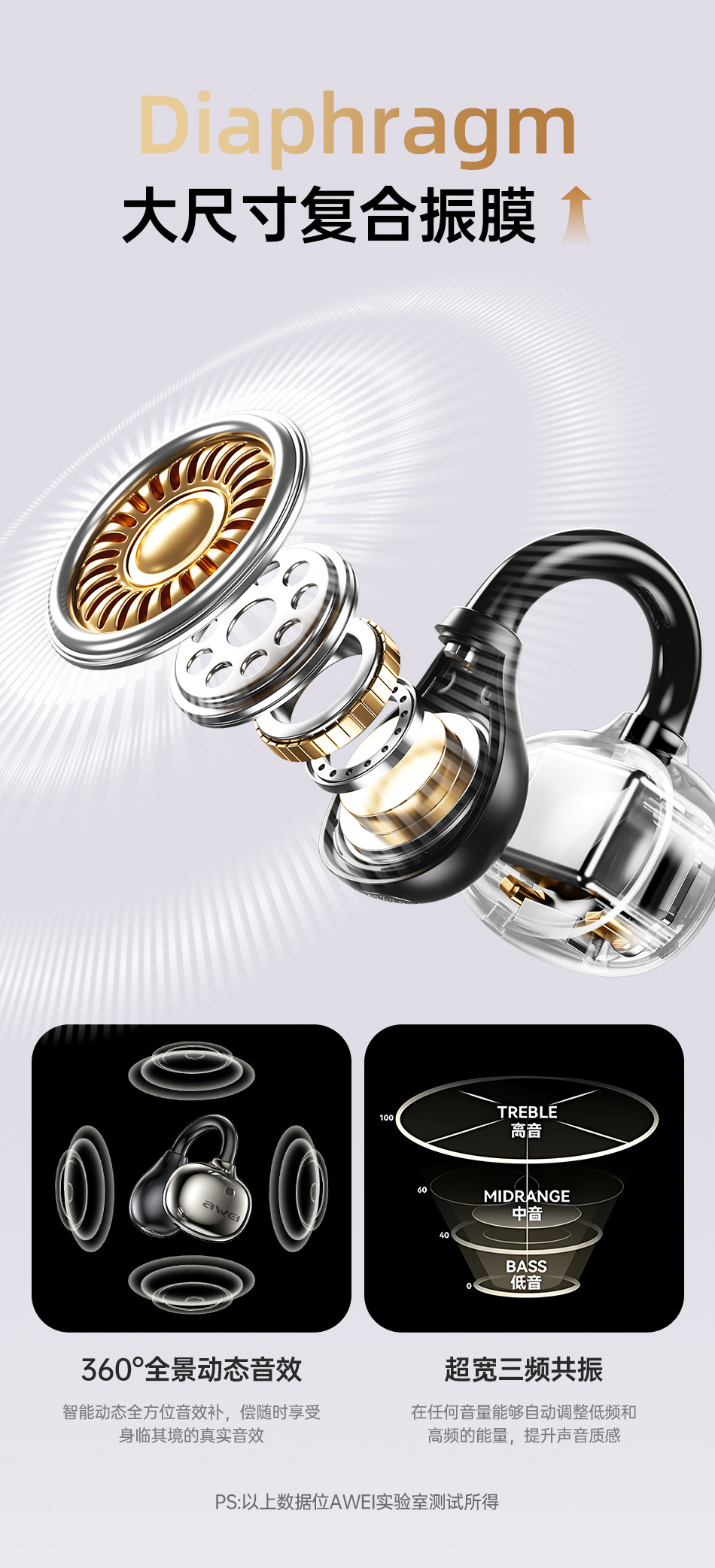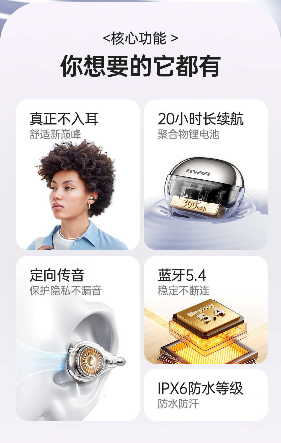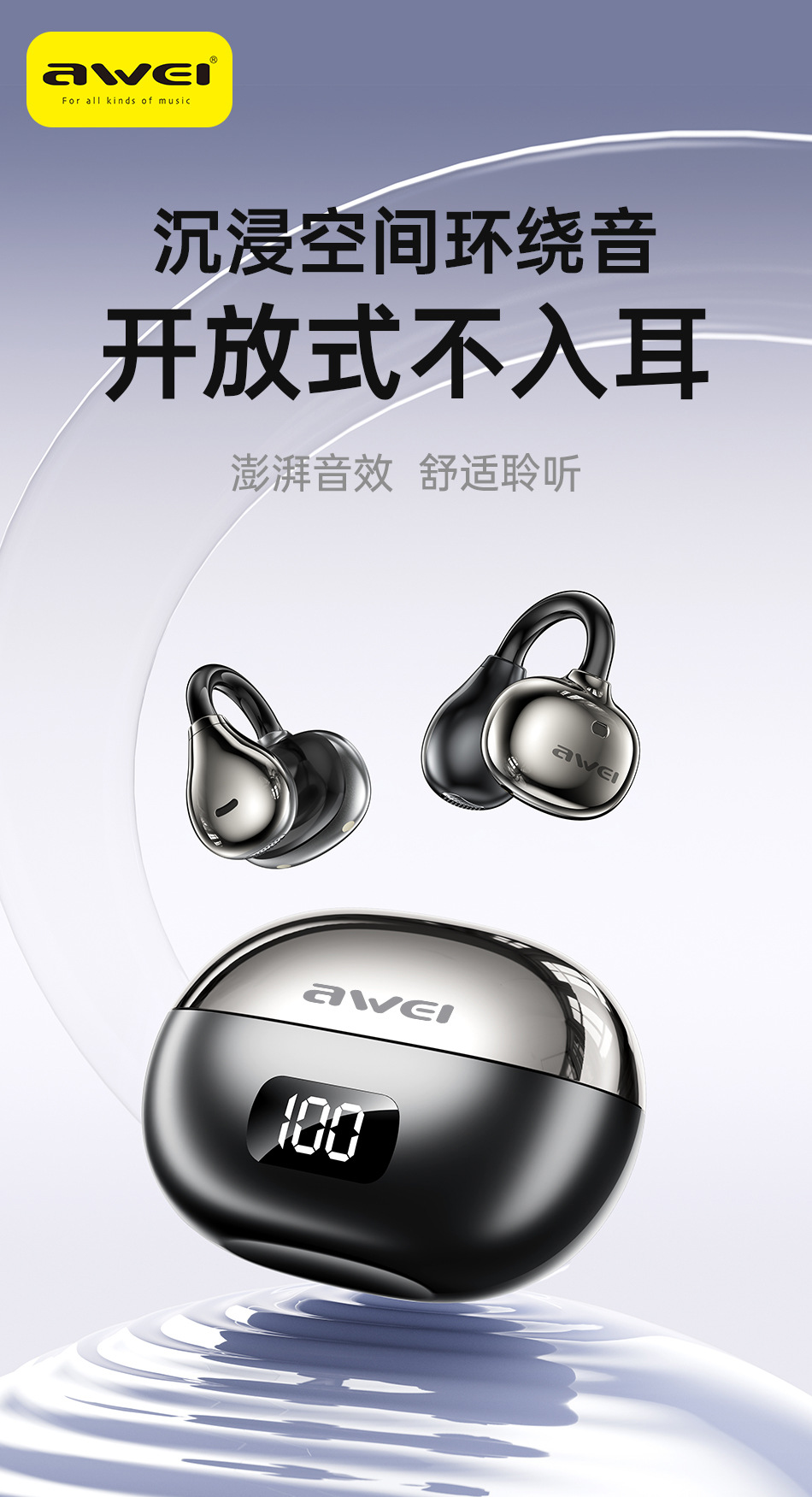 아웨이 블루투스 무선 이어폰 클립형 OWS 공기전도 방수 스포츠 피트니스 화창북 이어폰