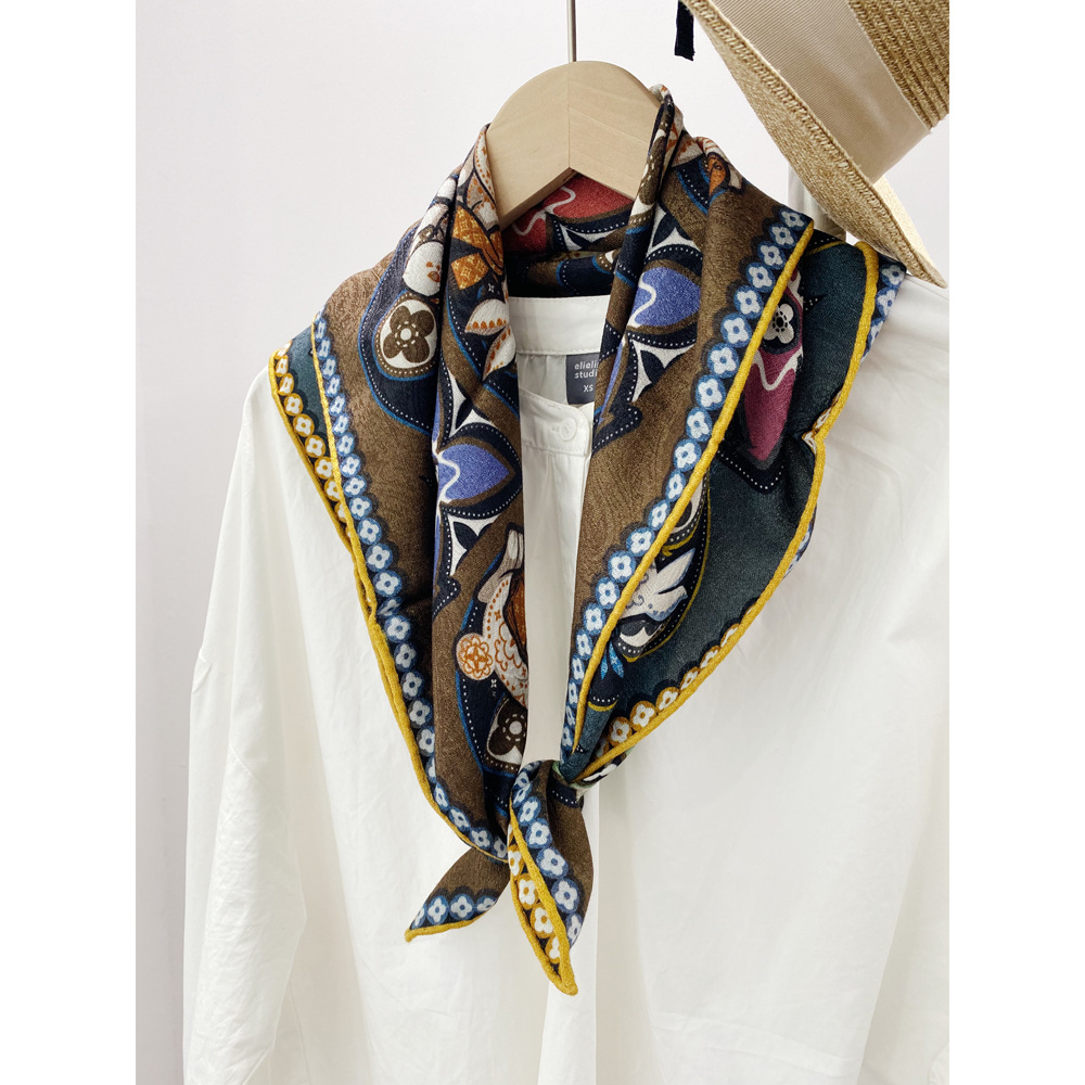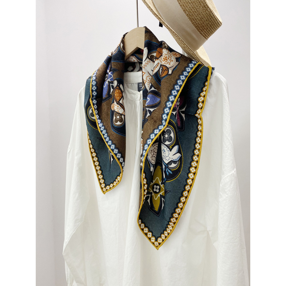 고급 자카드 공예 양면 인쇄 실크 울 중간 사각형 스카프 여성 패션 스카프 천연 소재 혼합 실크 스카프스토어 가기