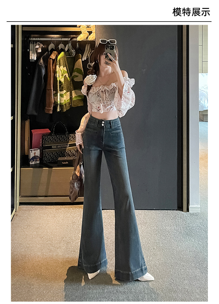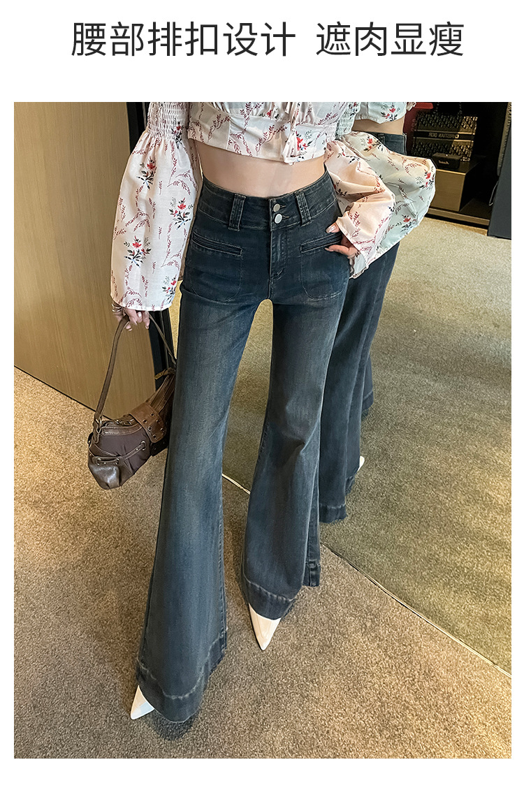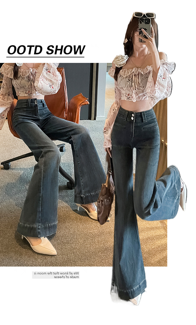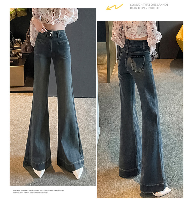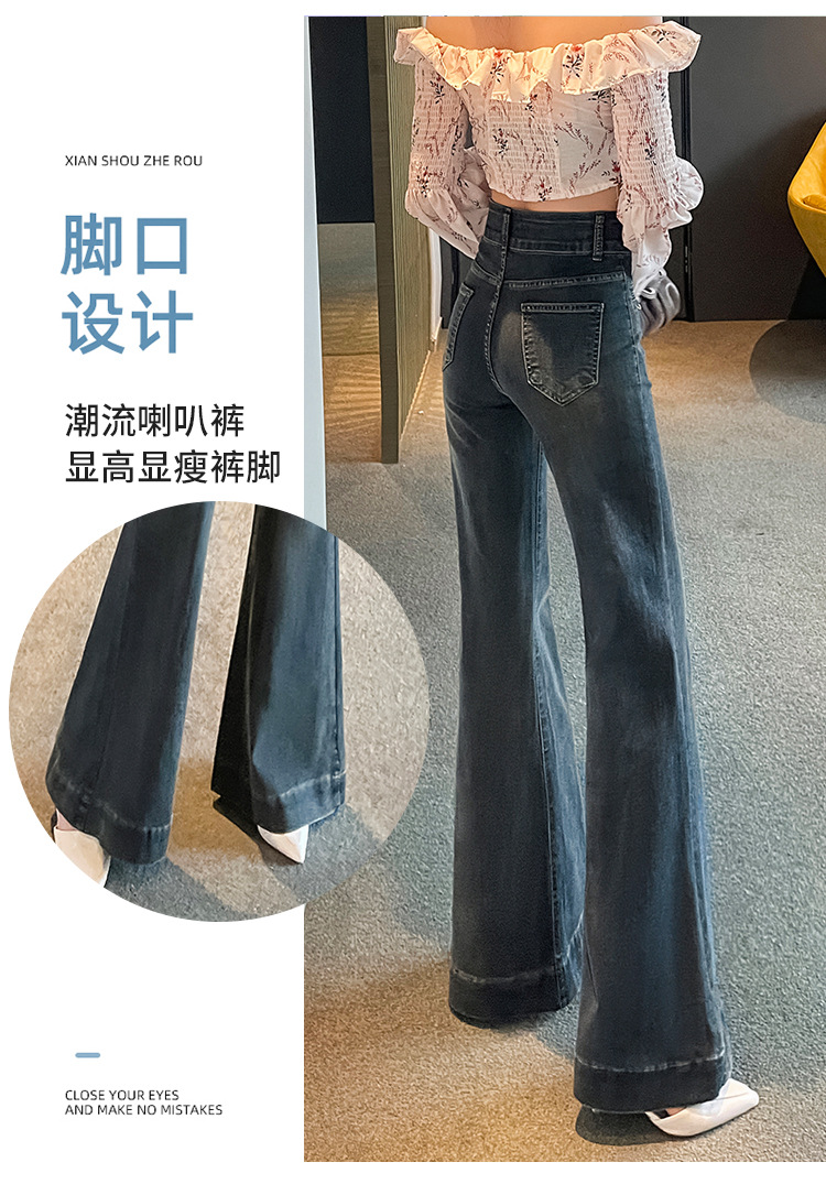 시멘트 재 새로운 도착 슬랙스 청바지 여성의 가을 및 겨울 올매치 높은 허리 슬리밍 디자인 센스 스트레치 경적 바지스토어 가기