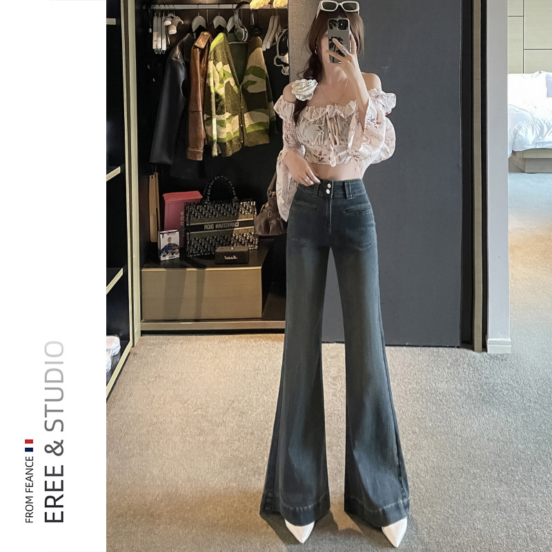 시멘트 재 새로운 도착 슬랙스 청바지 여성의 가을 및 겨울 올매치 높은 허리 슬리밍 디자인 센스 스트레치 경적 바지
