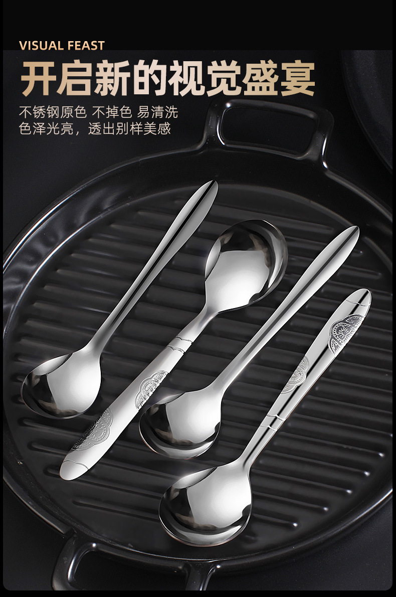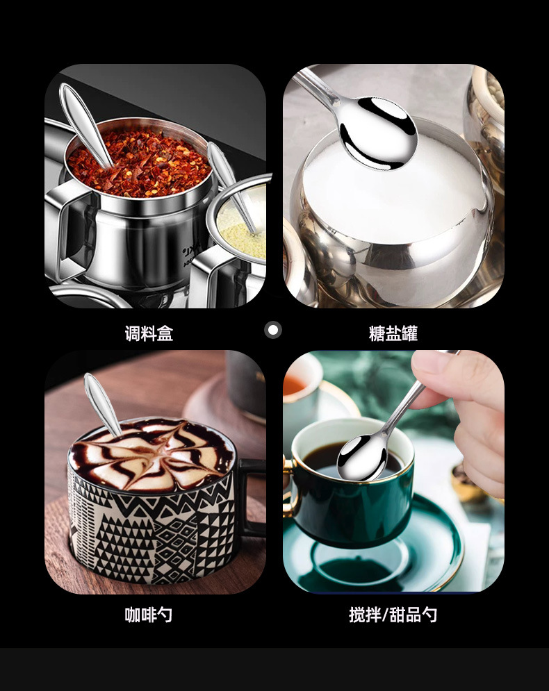 가정용 스테인레스 스틸 스푼 커피 혼합 숟가락 케이크 디저트 둥근 숟가락 두껍게 긴 손잡이 상업 숟가락 도매스토어 가기