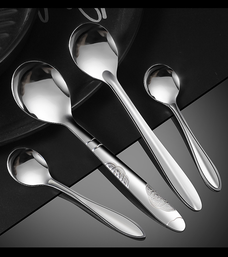 가정용 스테인레스 스틸 스푼 커피 혼합 숟가락 케이크 디저트 둥근 숟가락 두껍게 긴 손잡이 상업 숟가락 도매