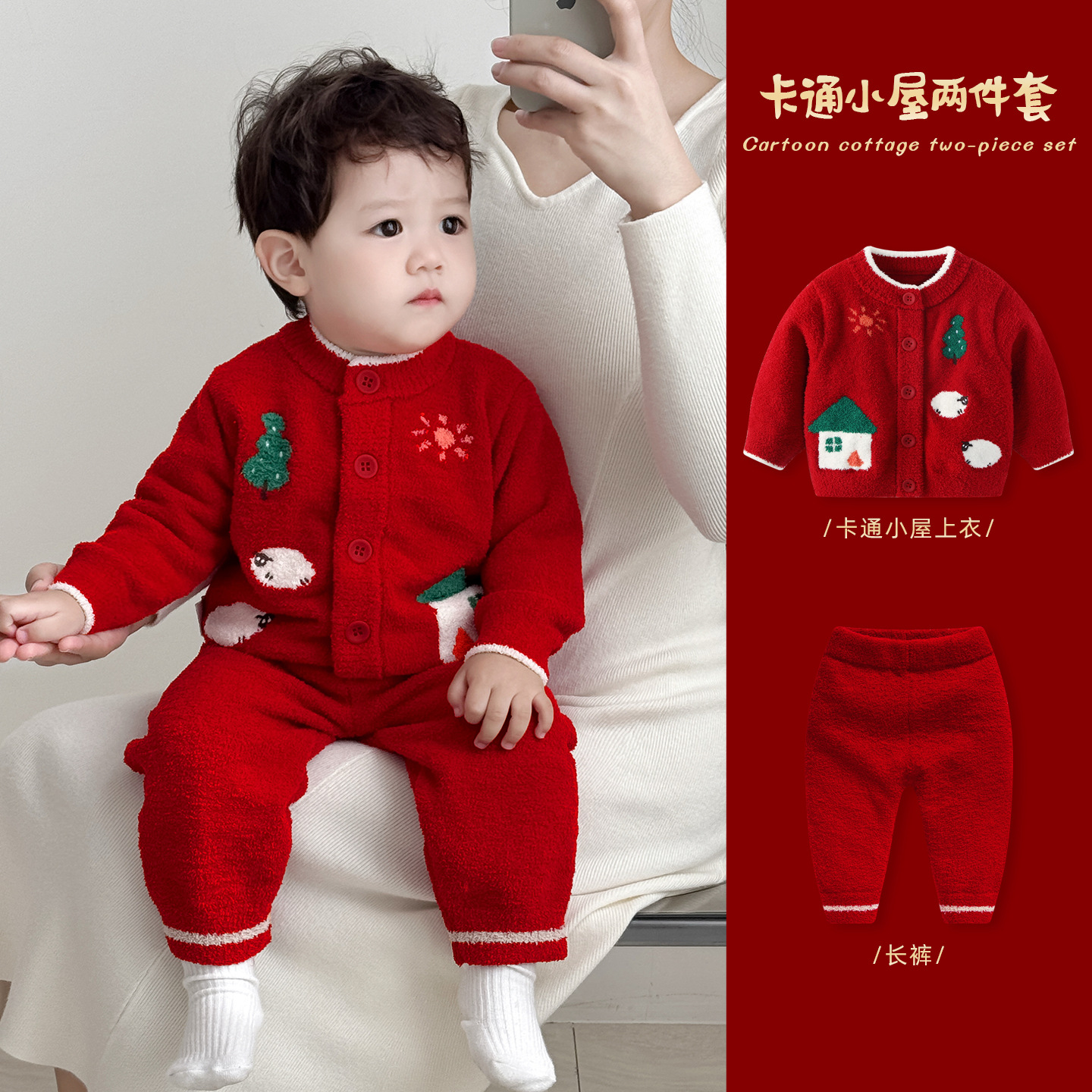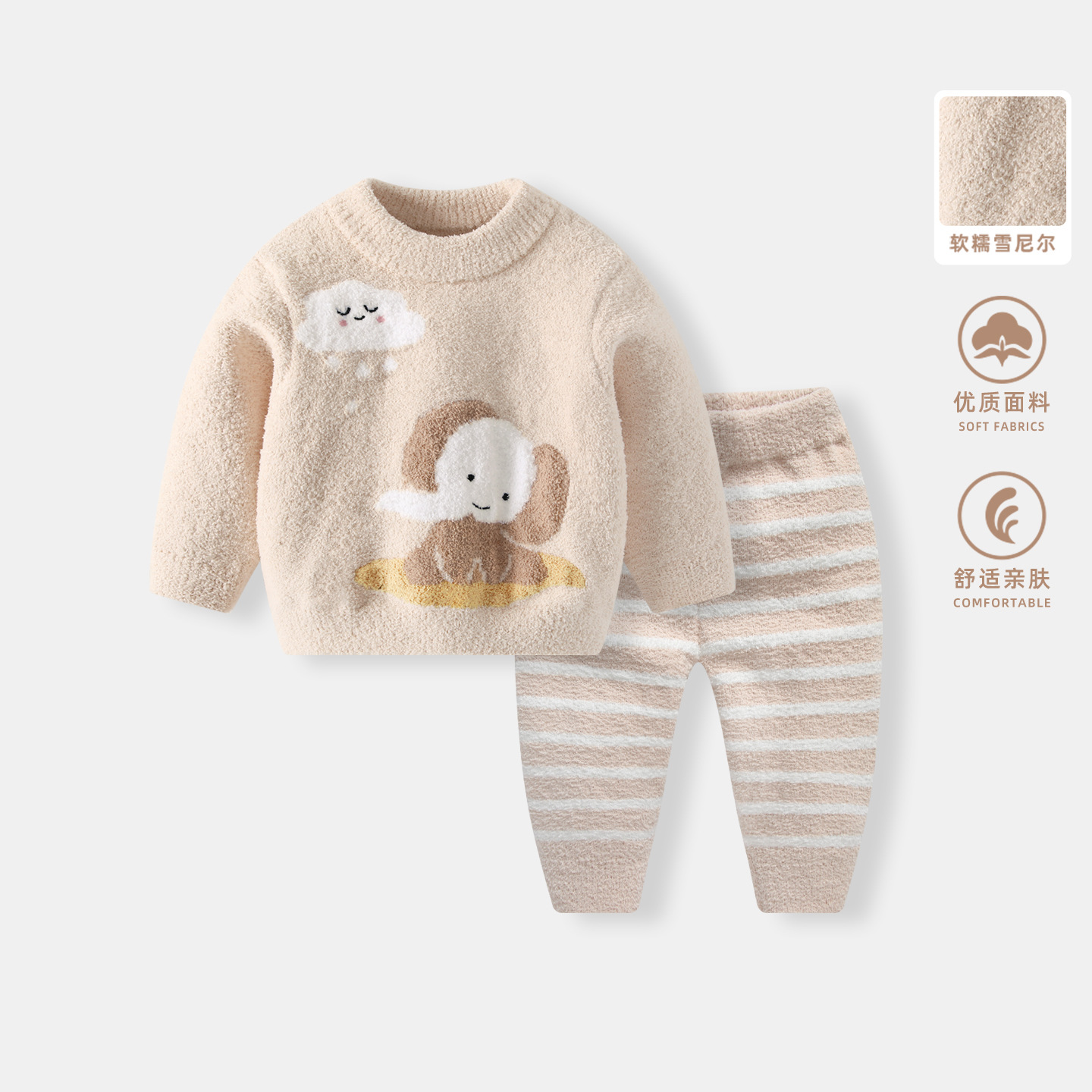 어린이 세트 가을과 겨울 남성 아기 집 옷 아기 반 벨벳 기모 두꺼운 스웨터 스웨터 따뜻한 옷
