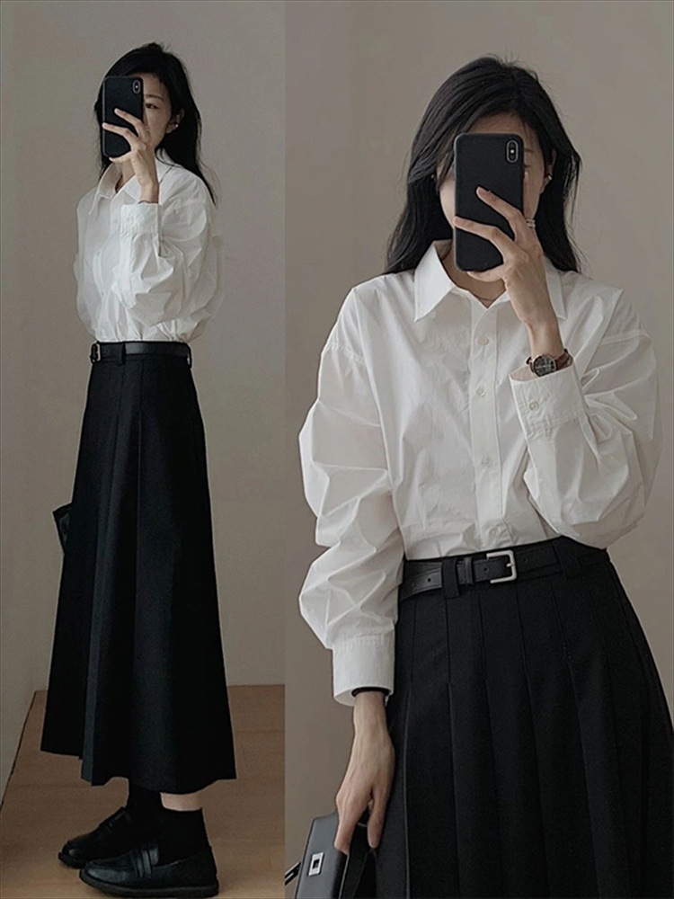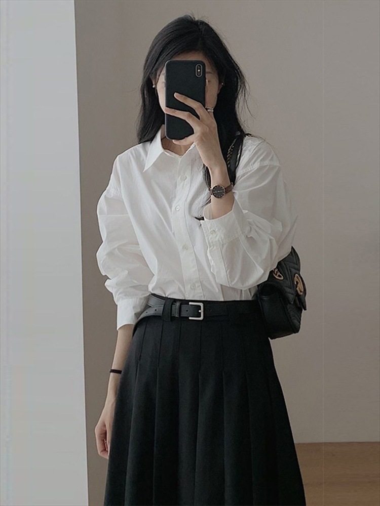 2024 봄과 가을 새로운 프랑스 스타일 우아한 화이트 셔츠 여성 로얄 자매 스타일 전문 원피스 긴 소매 디자인 센스 커밍 셔츠스토어 가기