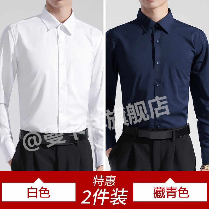 고급 남성 흰색 긴팔 셔츠 비즈니스 전문 원피스 블루 셔츠 세트 남성 의류스토어 가기