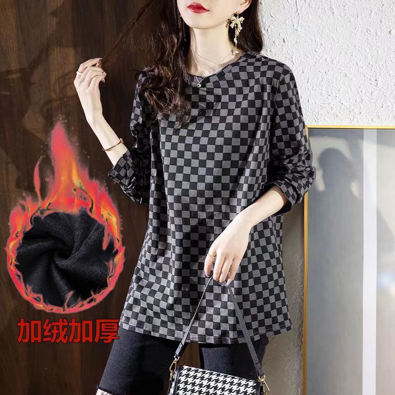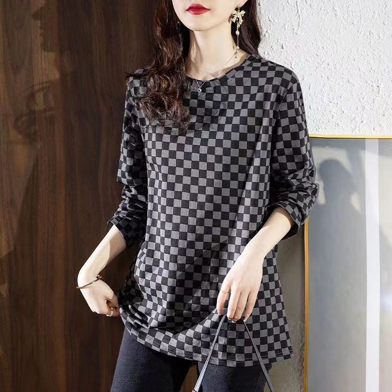 패션 플러스 사이즈 여성 체스 판 격자 땀 여자 올매치 편안한 느슨한 캐주얼 슬리밍 2023 년 가을과 겨울스토어 가기