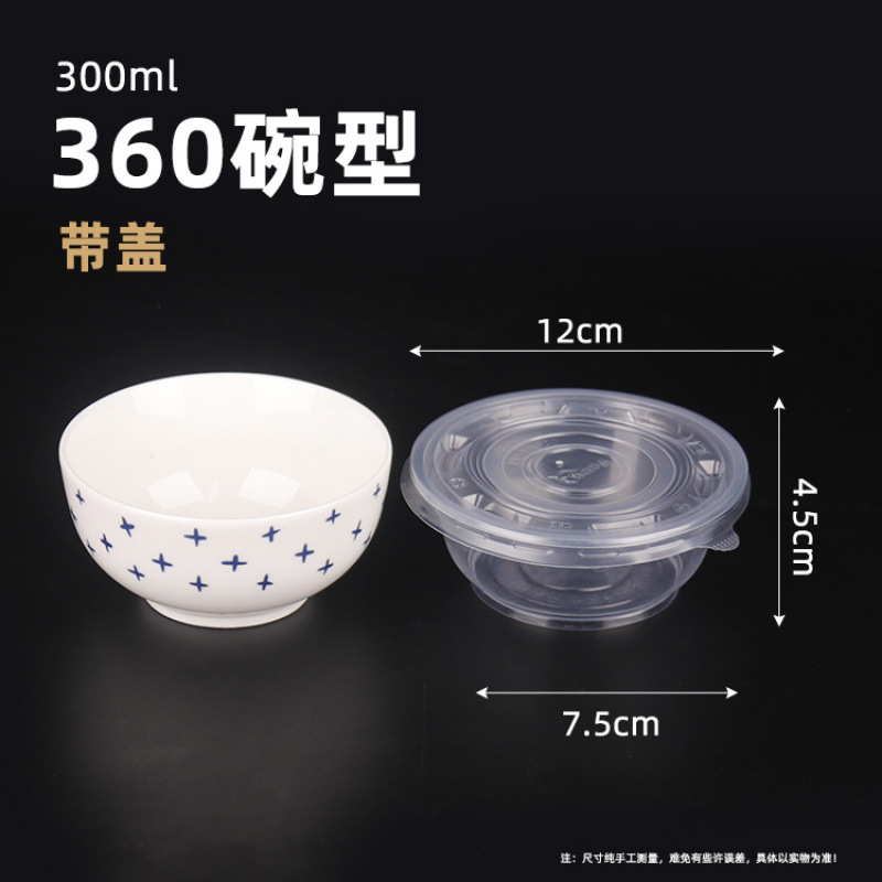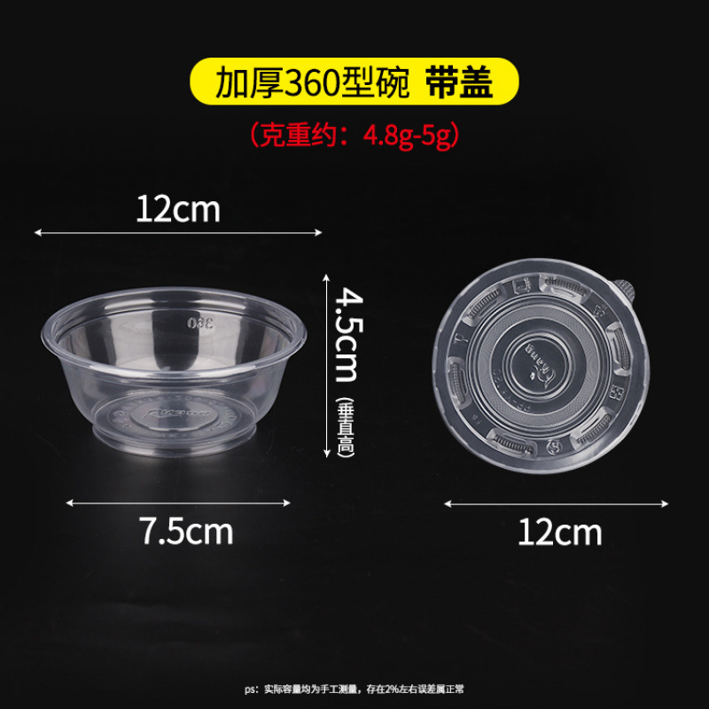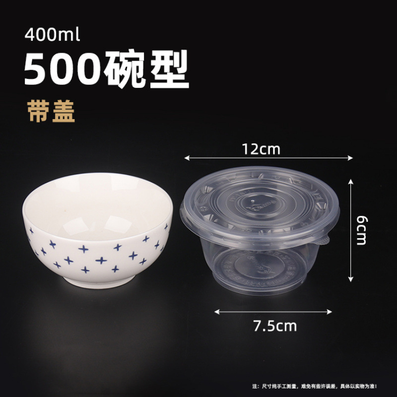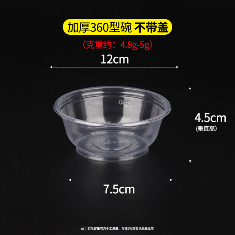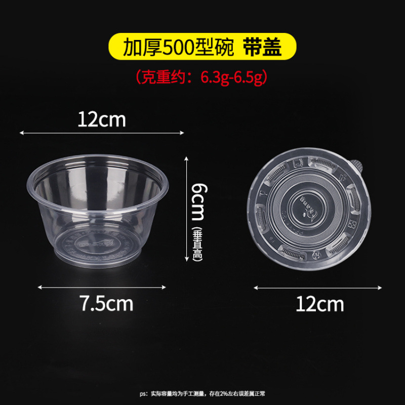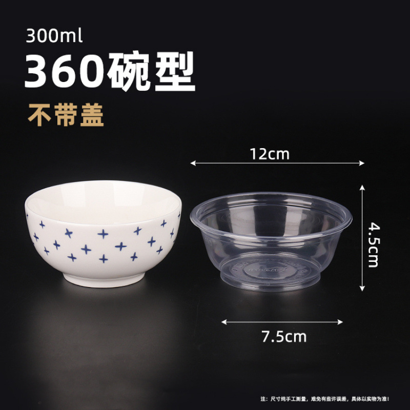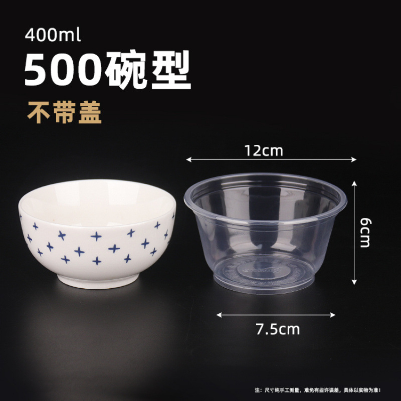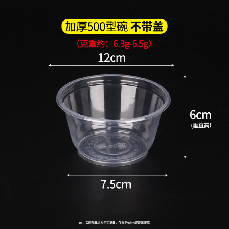 일회용 그릇 상업용 라운드 플라스틱 그릇 쌀 그릇 테이크 아웃 얼음 분말 그릇 포장 투명한 식사 상자 수프 그릇 덮지 않은 식기스토어 가기
