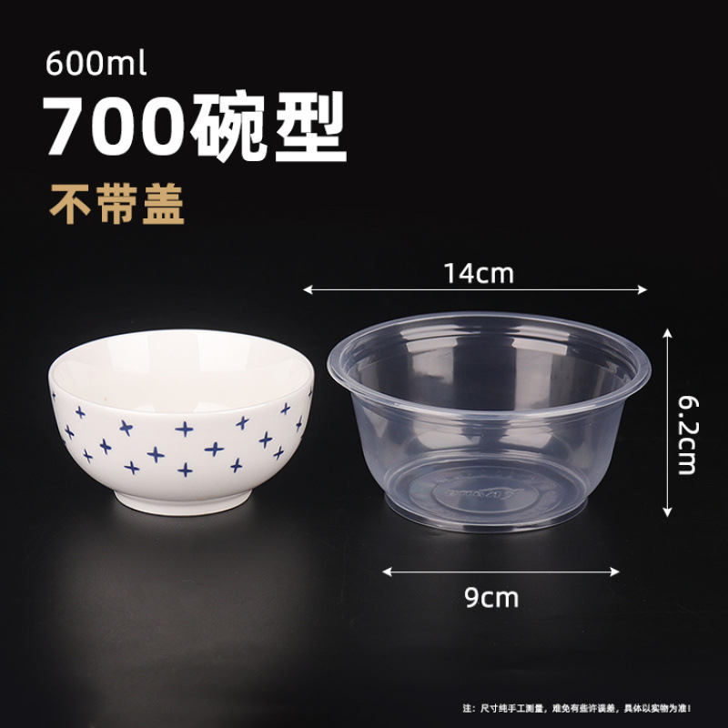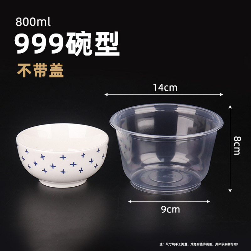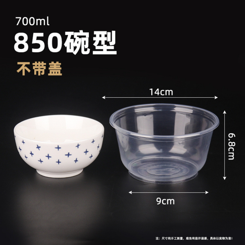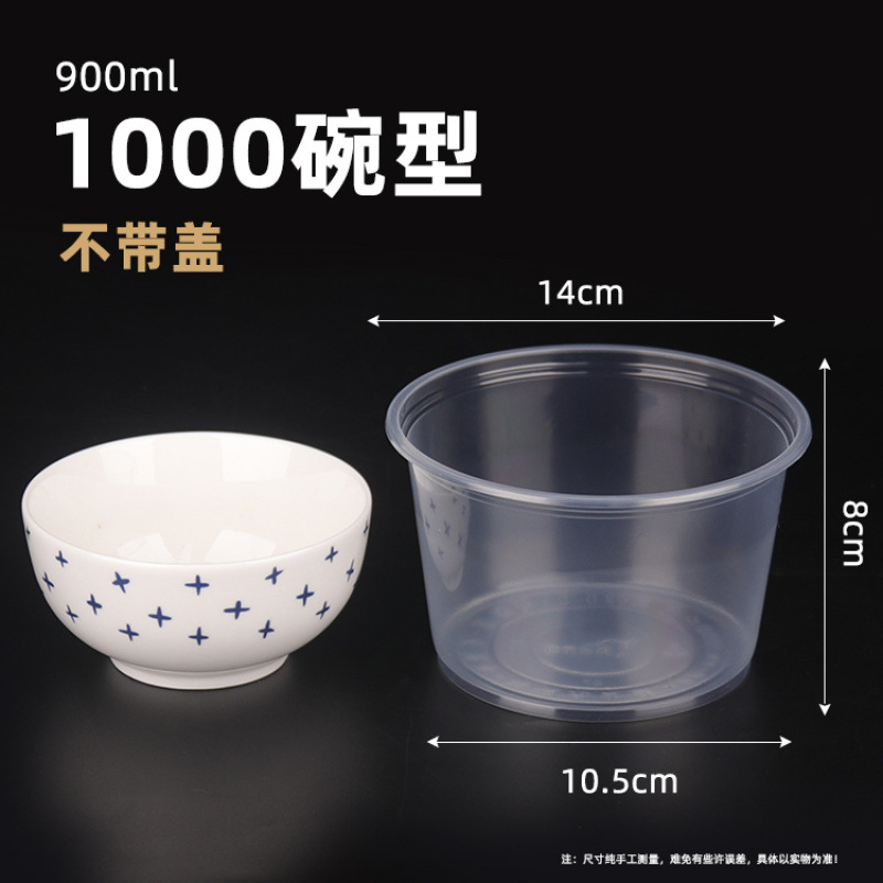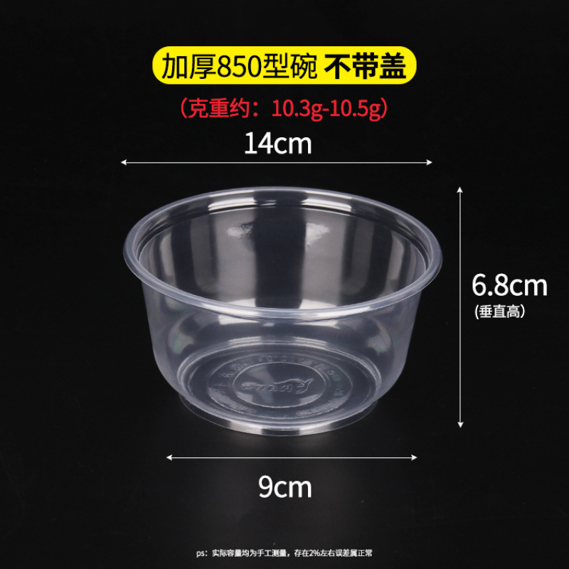 일회용 그릇 상업용 라운드 플라스틱 그릇 쌀 그릇 테이크 아웃 얼음 분말 그릇 포장 투명한 식사 상자 수프 그릇 덮지 않은 식기