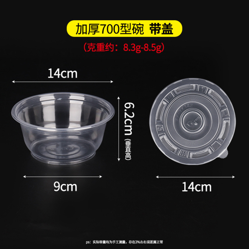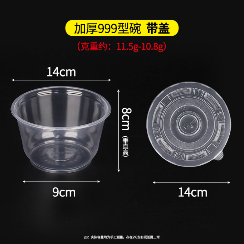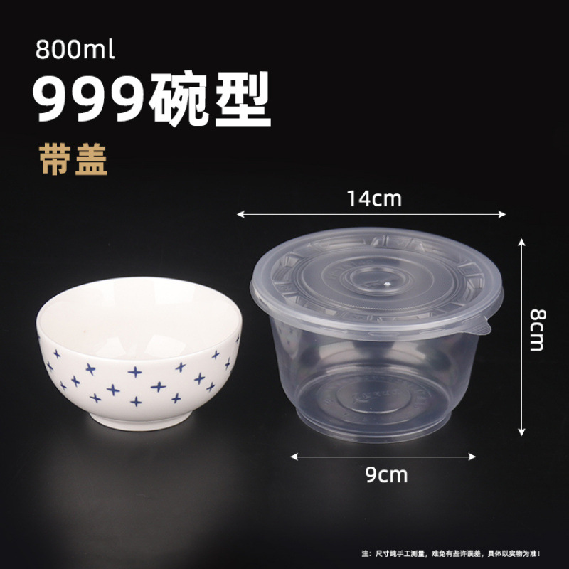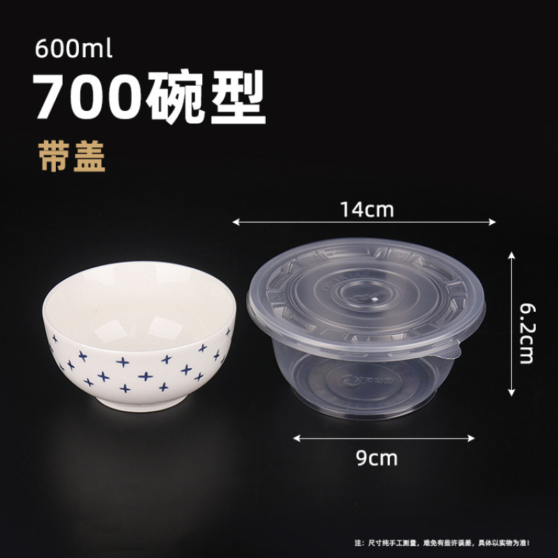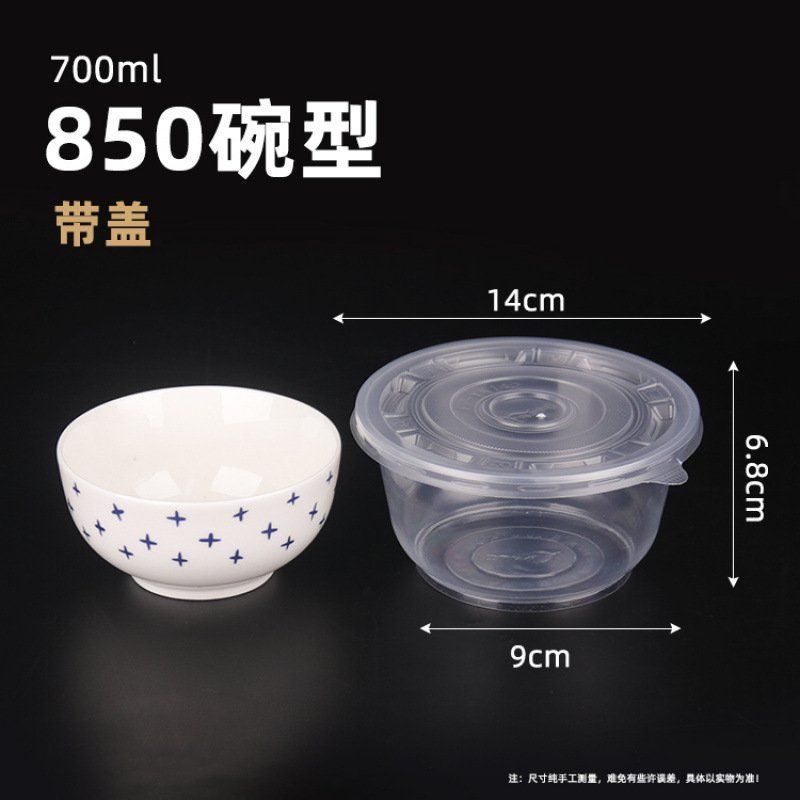 일회용 그릇 상업용 라운드 플라스틱 그릇 쌀 그릇 테이크 아웃 얼음 분말 그릇 포장 투명한 식사 상자 수프 그릇 덮지 않은 식기