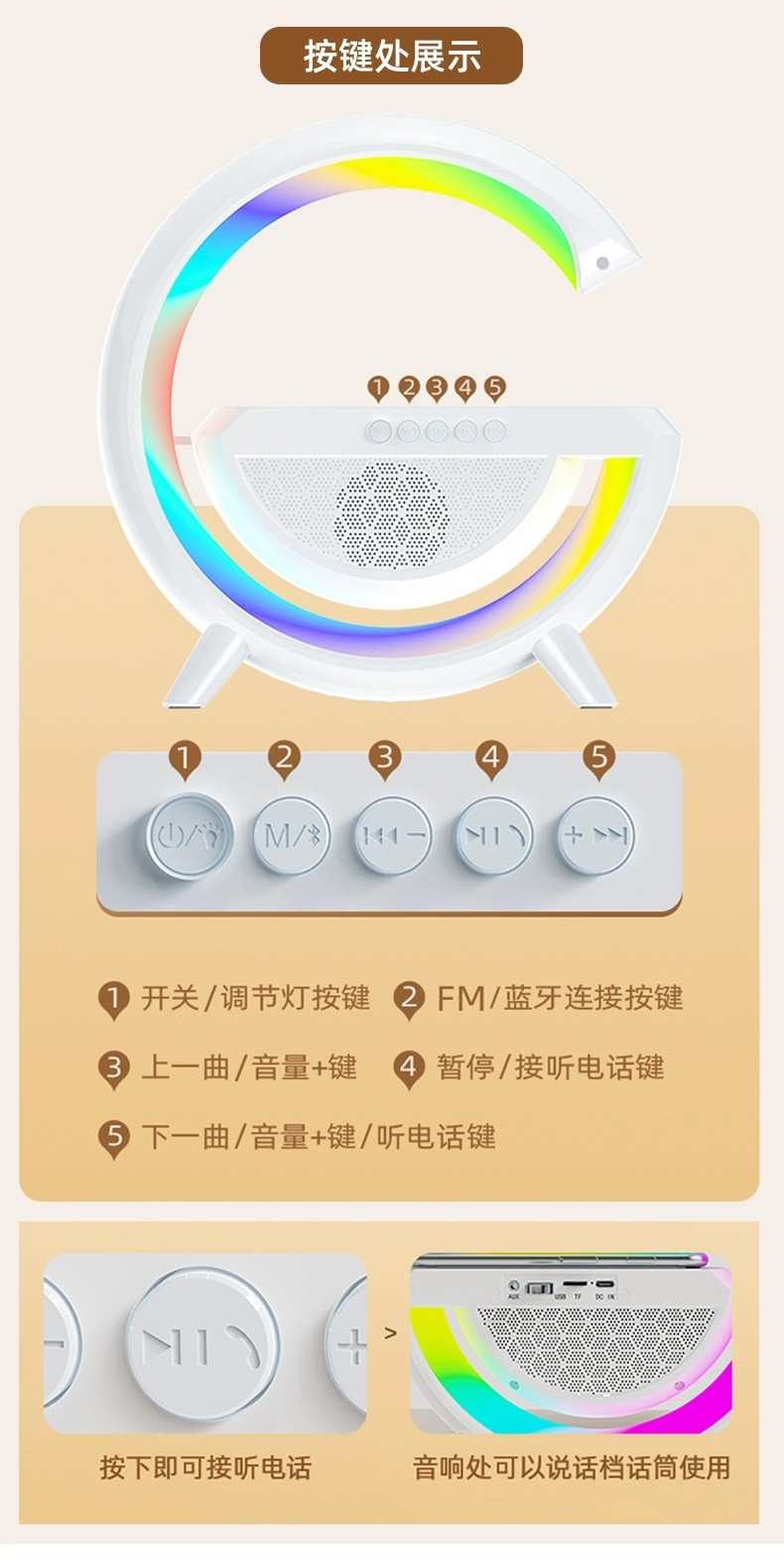 블루투스 스피커 무선 충전 다기능 분위기 나이트 라이트 알람 시계 생일 선물 휴대 전화 오디오 실용적인 홈스토어 가기