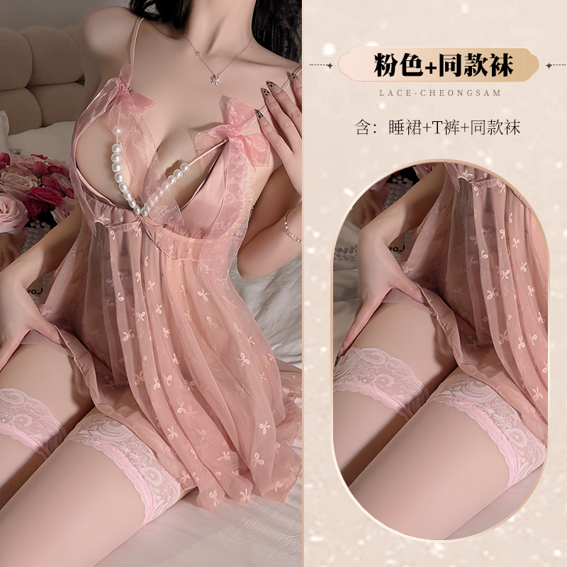 섹시한 속옷 섹시 열정 투명한 니핑 아웃 백리스 순수한 매력 슬링 메쉬 Flirting Pajamas Uniform스토어 가기