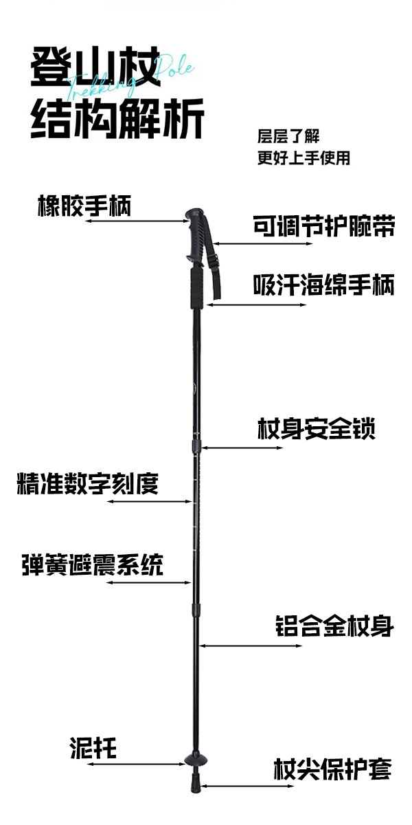 등산 스틱 접히는 전문 야외 등반 목발 장비 하이킹 스키 목발 알루미늄 합금 초경량 망원경