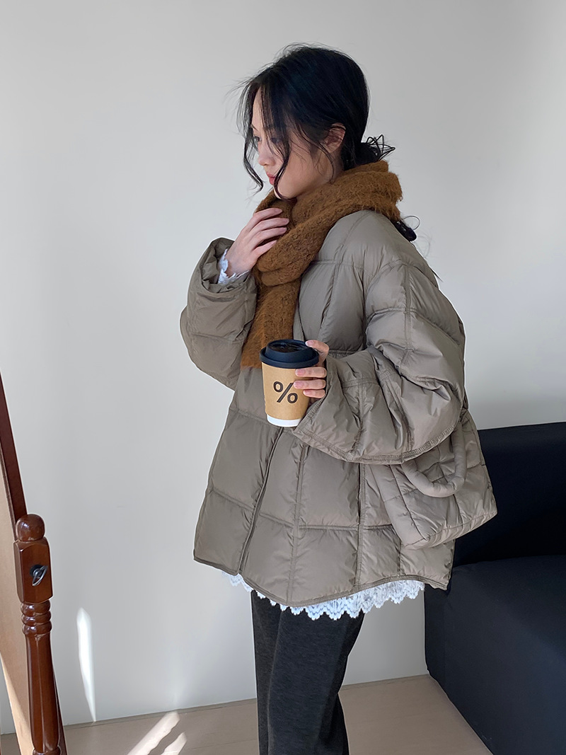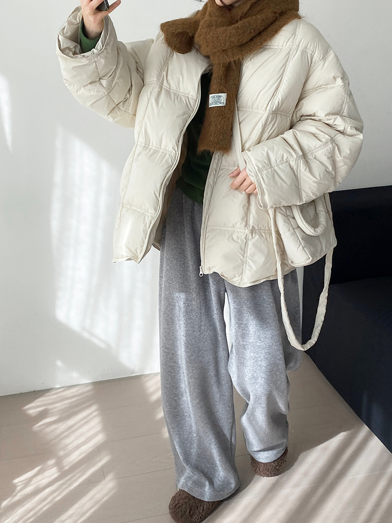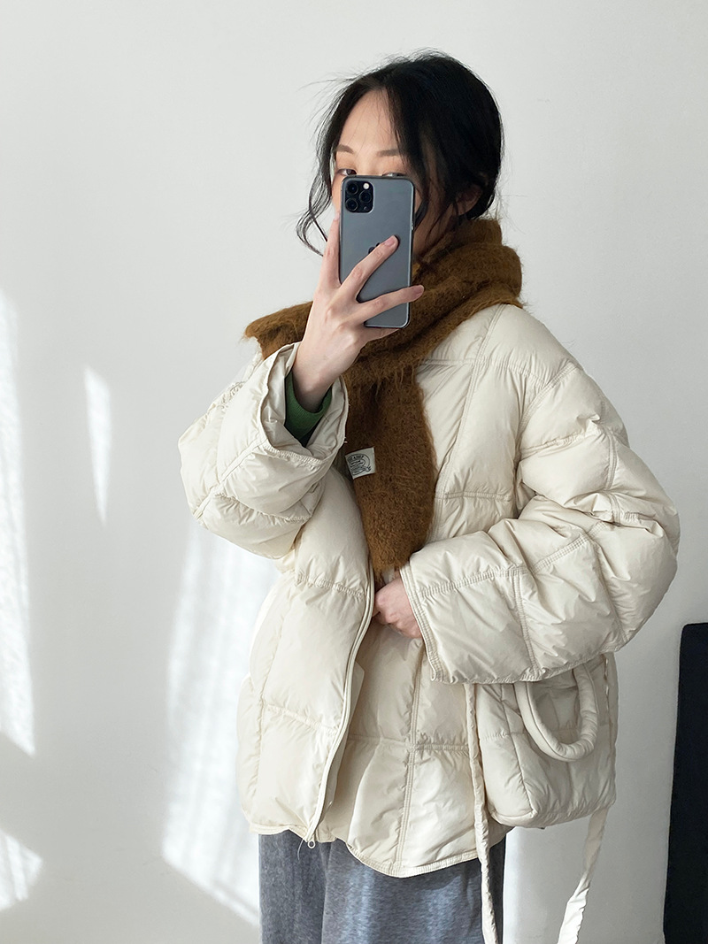 구름 끝에서 따뜻한 90 흰 오리 가방 다운 재킷 둥근 목 빵 코트 2351