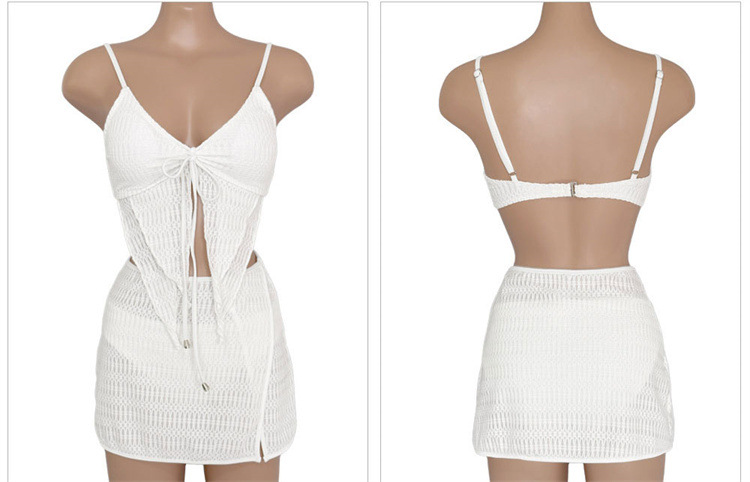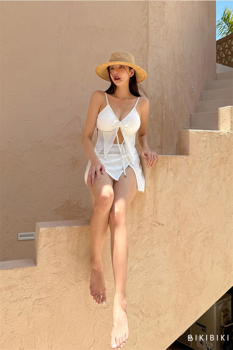 새로운 패션 화이트 순수한 욕망 섹시한 Leaky Back Bra Split Triangle Bikini, 스커트 살을 가리는 슬림 수영복