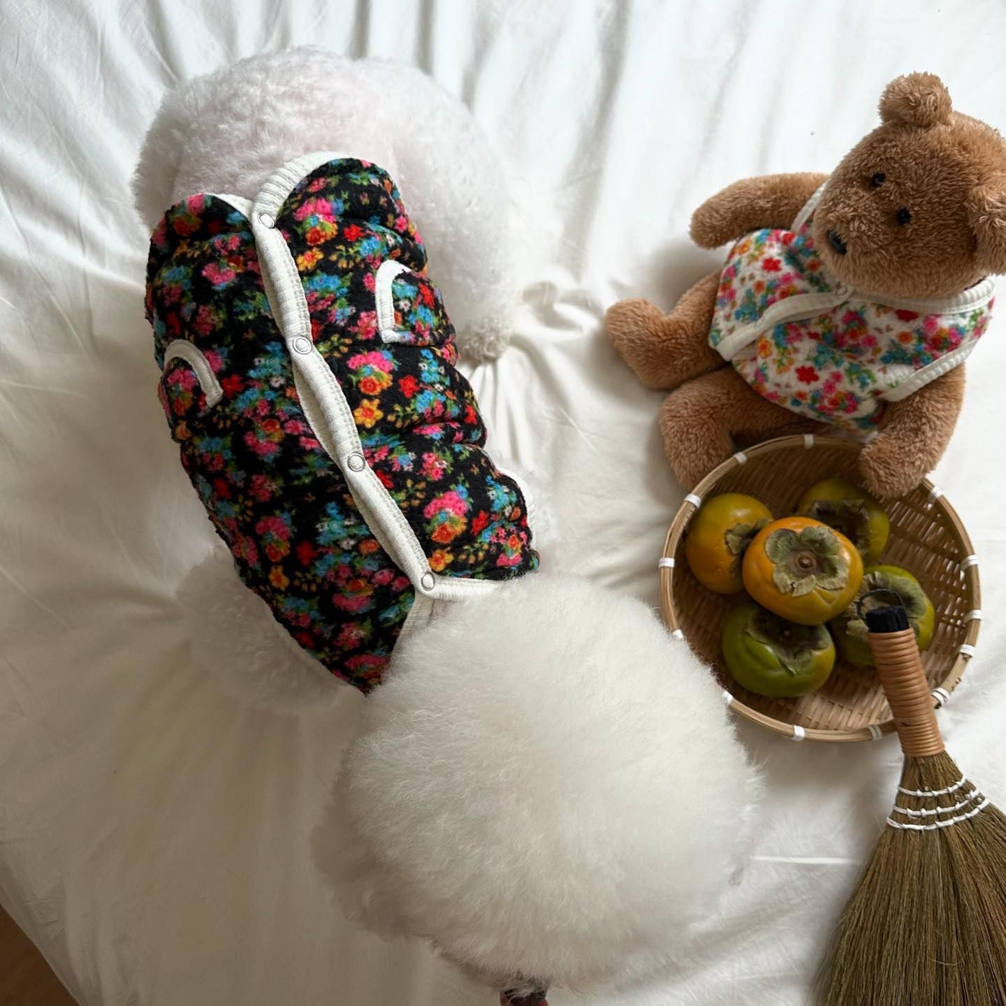 가을과 겨울 옷 개 고양이 애완 동물 북동 큰 꽃 코트면 패딩 코트 곰 테디 새해 옷보다 작고 중간 크기의 개면 패딩 코트