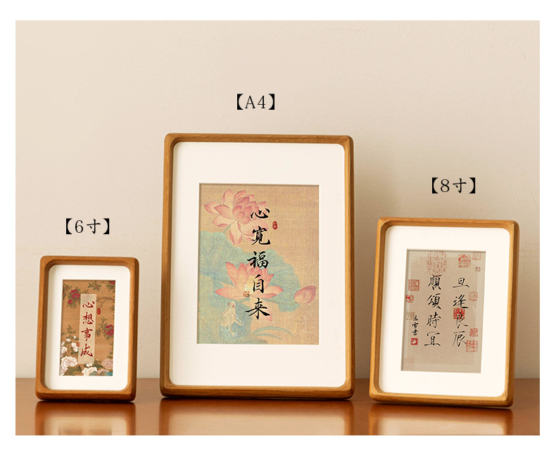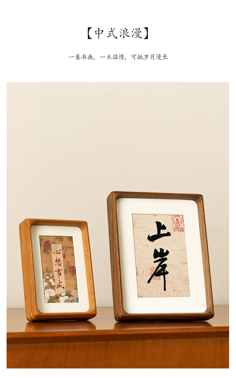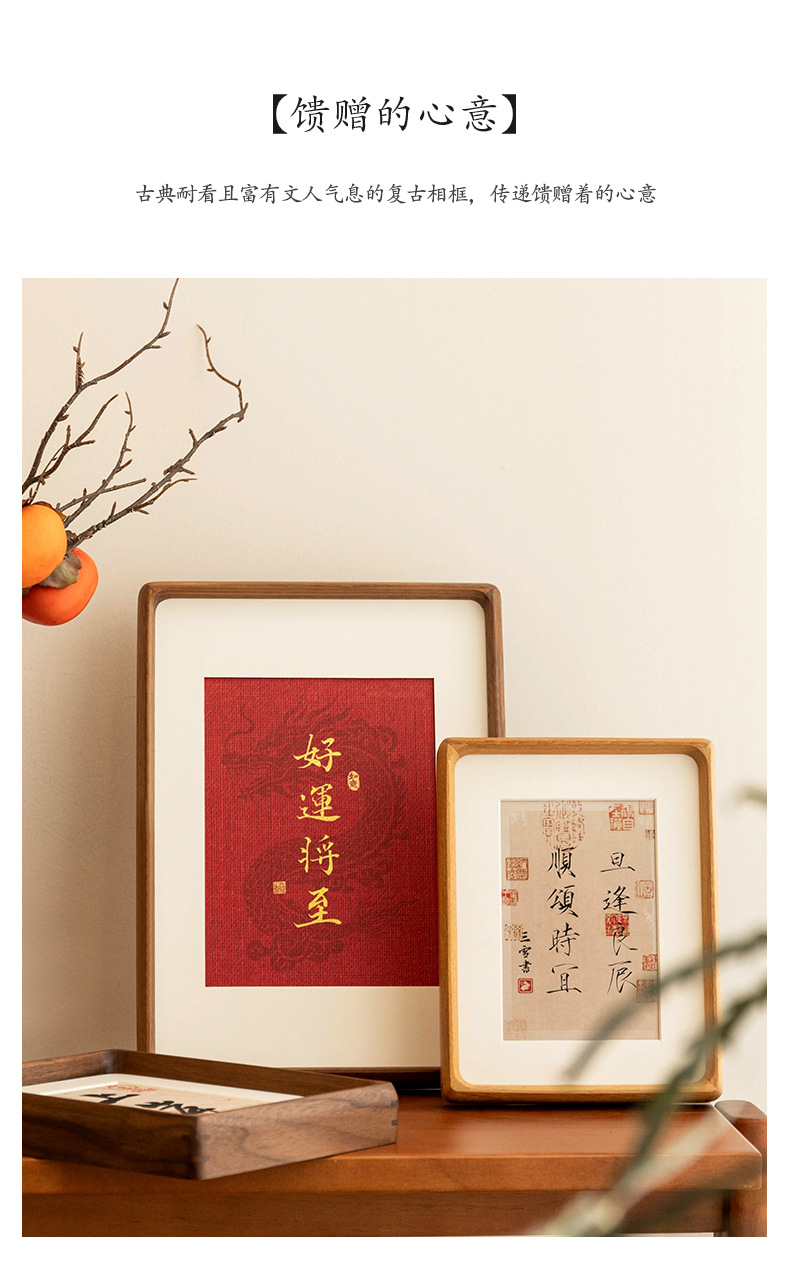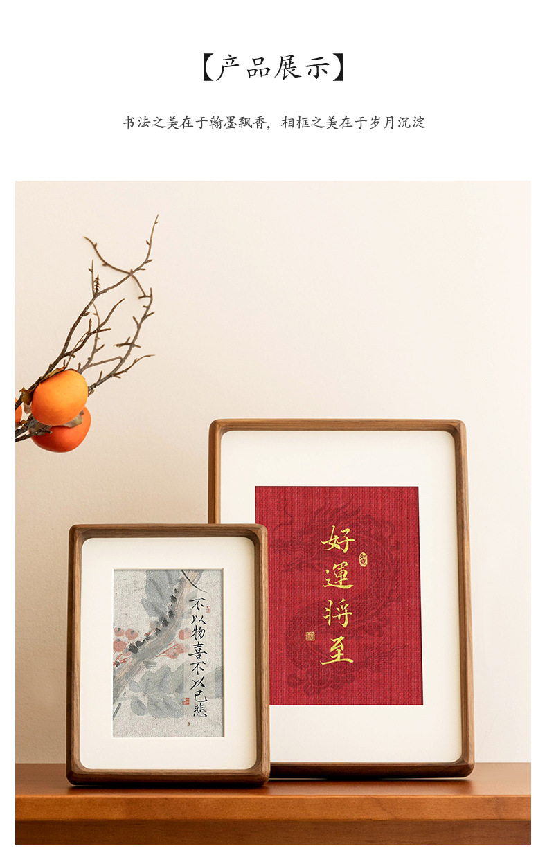 고급 감각 티크 둥근 검은 호두 사진 프레임 장형 및 테너 매달려 벽 서예 테이블 6 서예 및 그림 사진 프레임 8 장신구 A4스토어 가기
