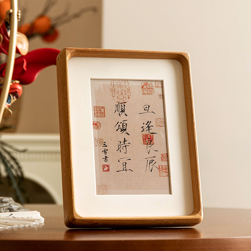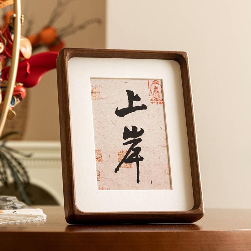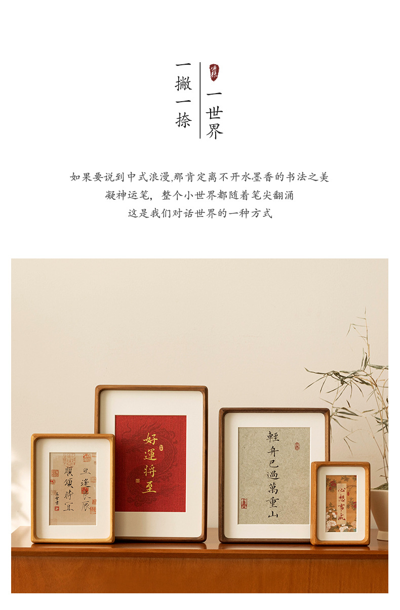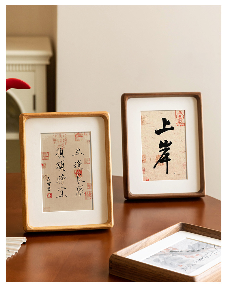 고급 감각 티크 둥근 검은 호두 사진 프레임 장형 및 테너 매달려 벽 서예 테이블 6 서예 및 그림 사진 프레임 8 장신구 A4스토어 가기