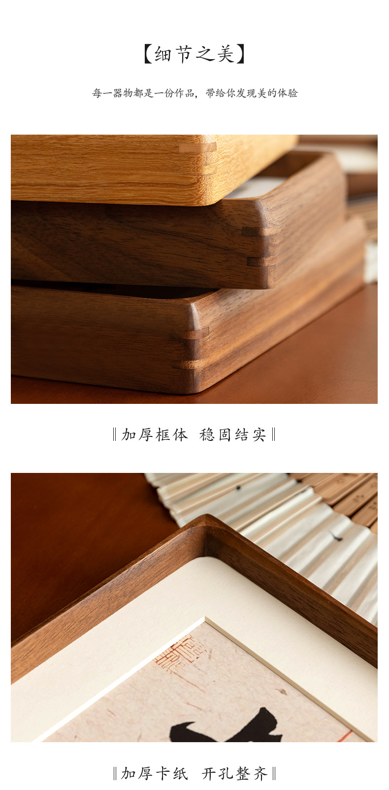 고급 감각 티크 둥근 검은 호두 사진 프레임 장형 및 테너 매달려 벽 서예 테이블 6 서예 및 그림 사진 프레임 8 장신구 A4