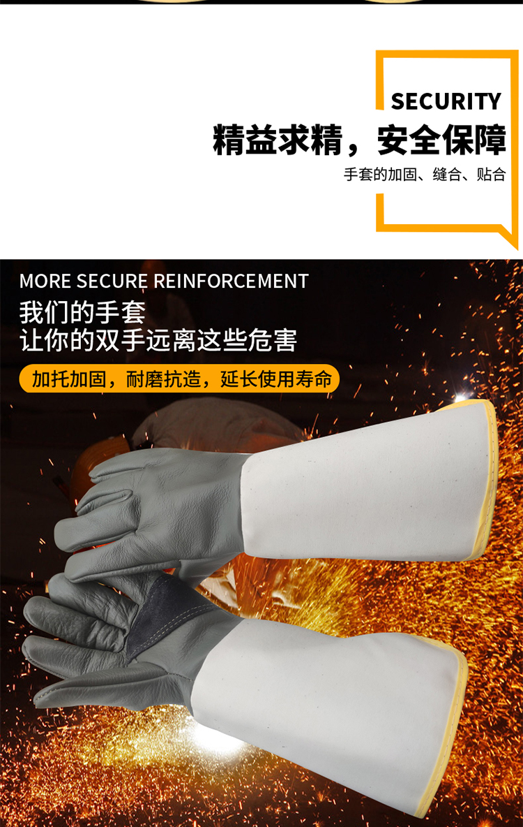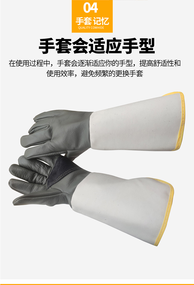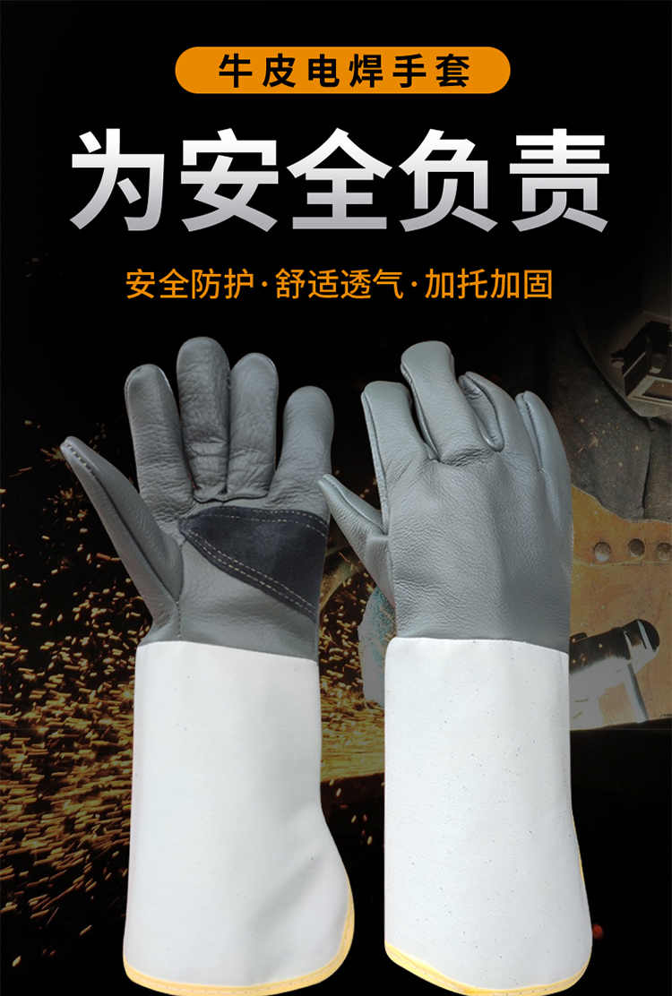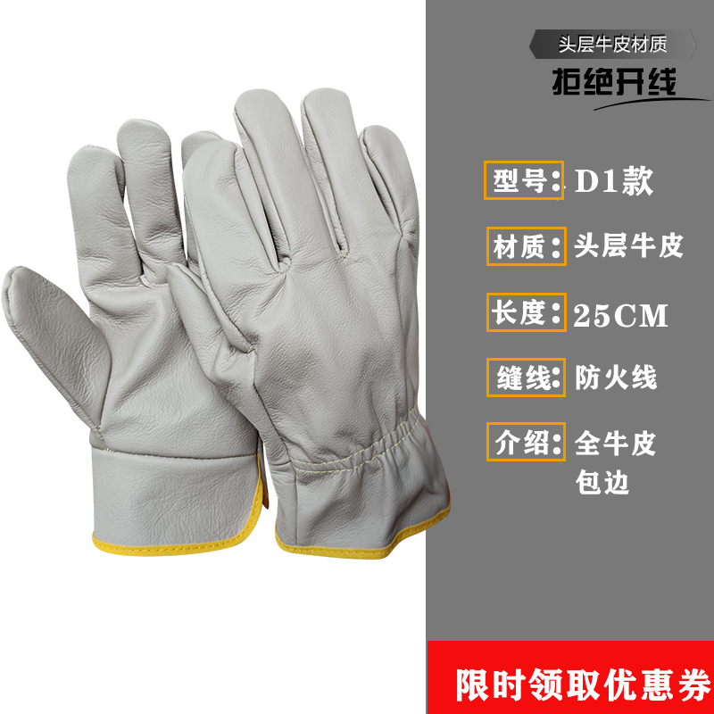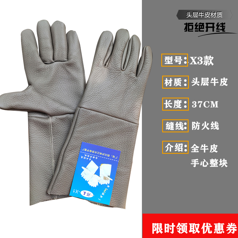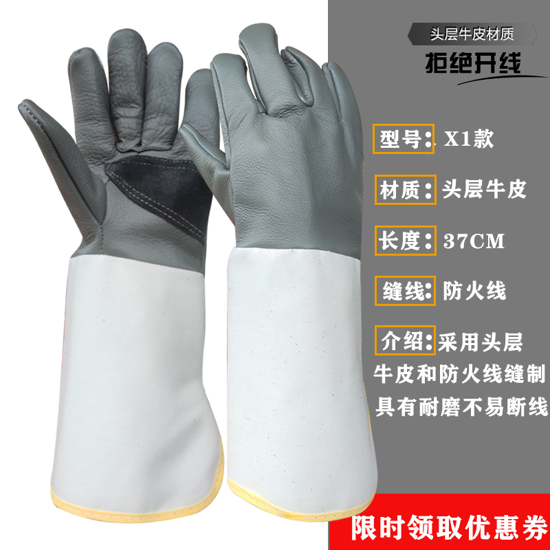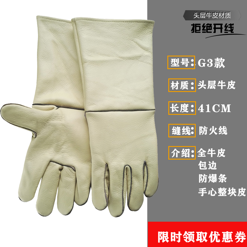 Cowhide 용접 장갑 두껍고 부드럽고 긴 용접기 특수 안티 scald 고온 착용 저항 왼손 노동 보호스토어 가기