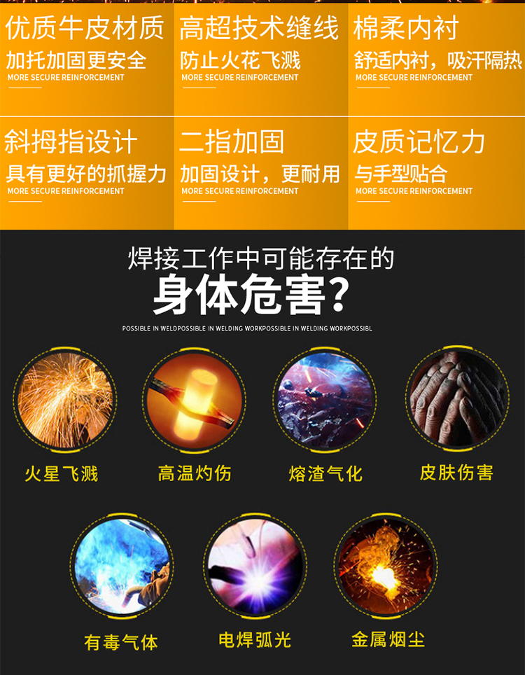 • 하나의 사이즈로 모든 용도에 적합 - 소가죽 고온 방지 스티치
