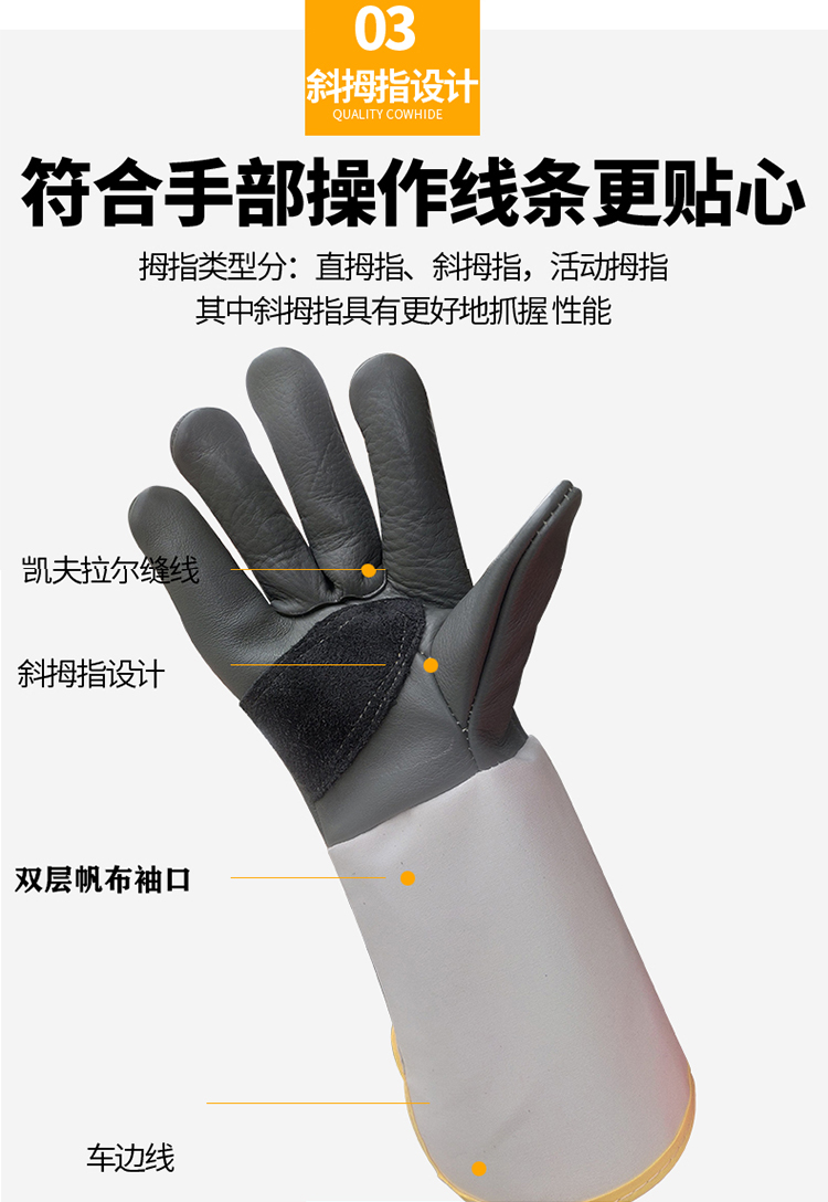 • 프리 사이즈 - 37cm 전체 소가죽 고온 방지 스티치