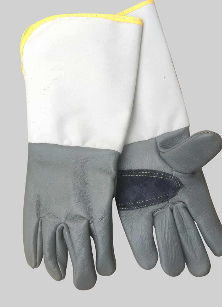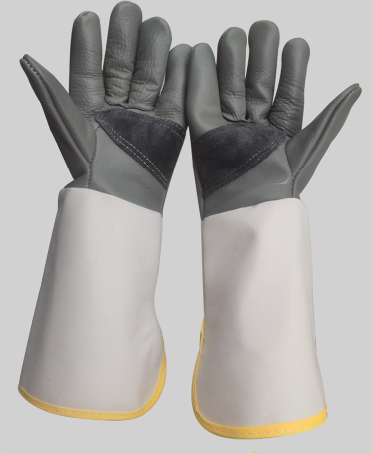 Cowhide 용접 장갑 두껍고 부드럽고 긴 용접기 특수 안티 scald 고온 착용 저항 왼손 노동 보호