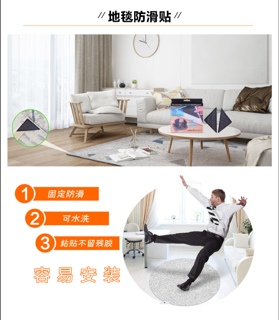 소스 공장 temu Xiyin의 인기 있는 미끄럼 방지 카펫 고정 스티커 PU 세척 가능 미끄럼 방지 카펫 스티커 양면 테이프