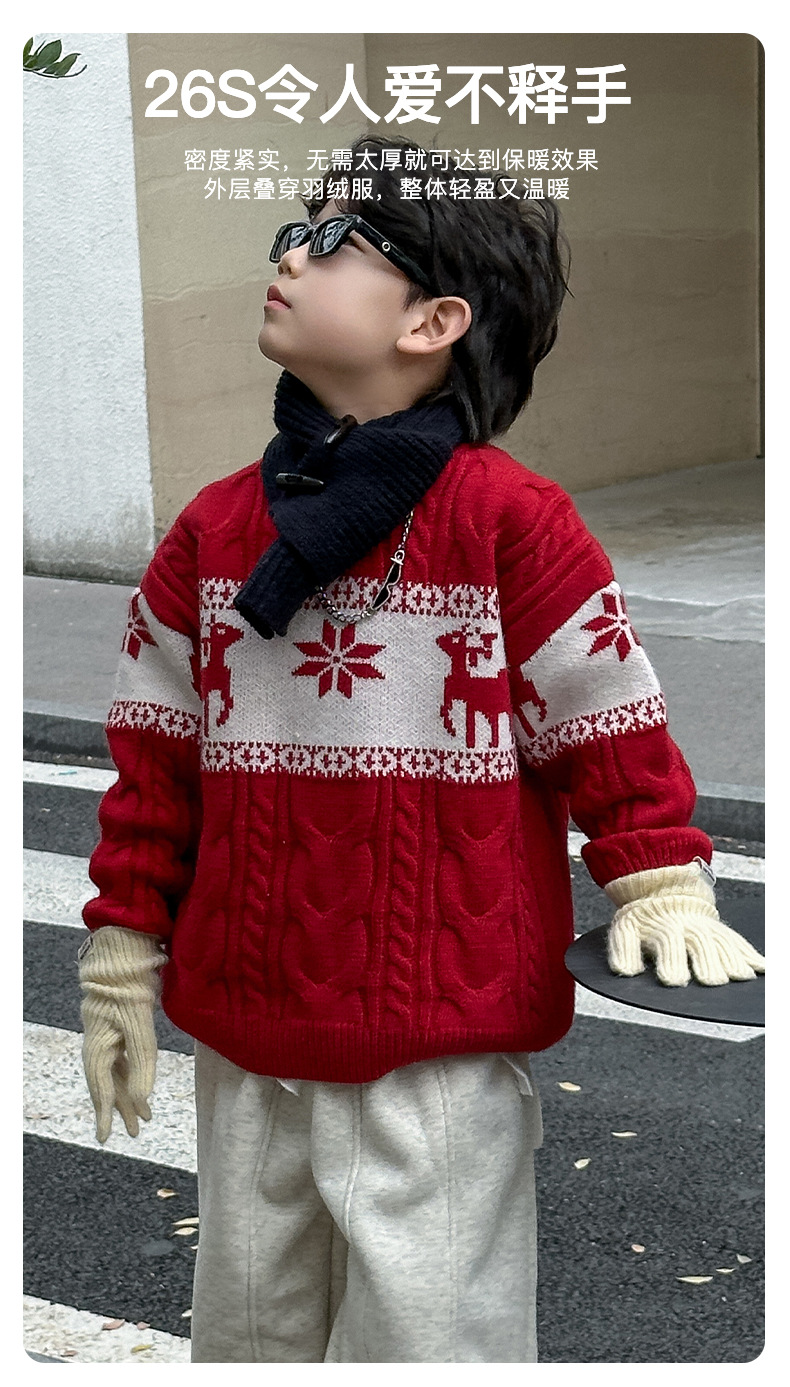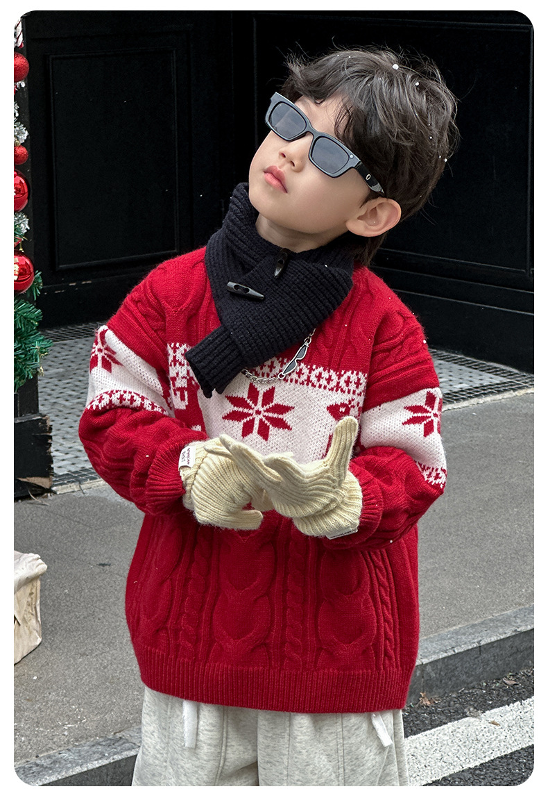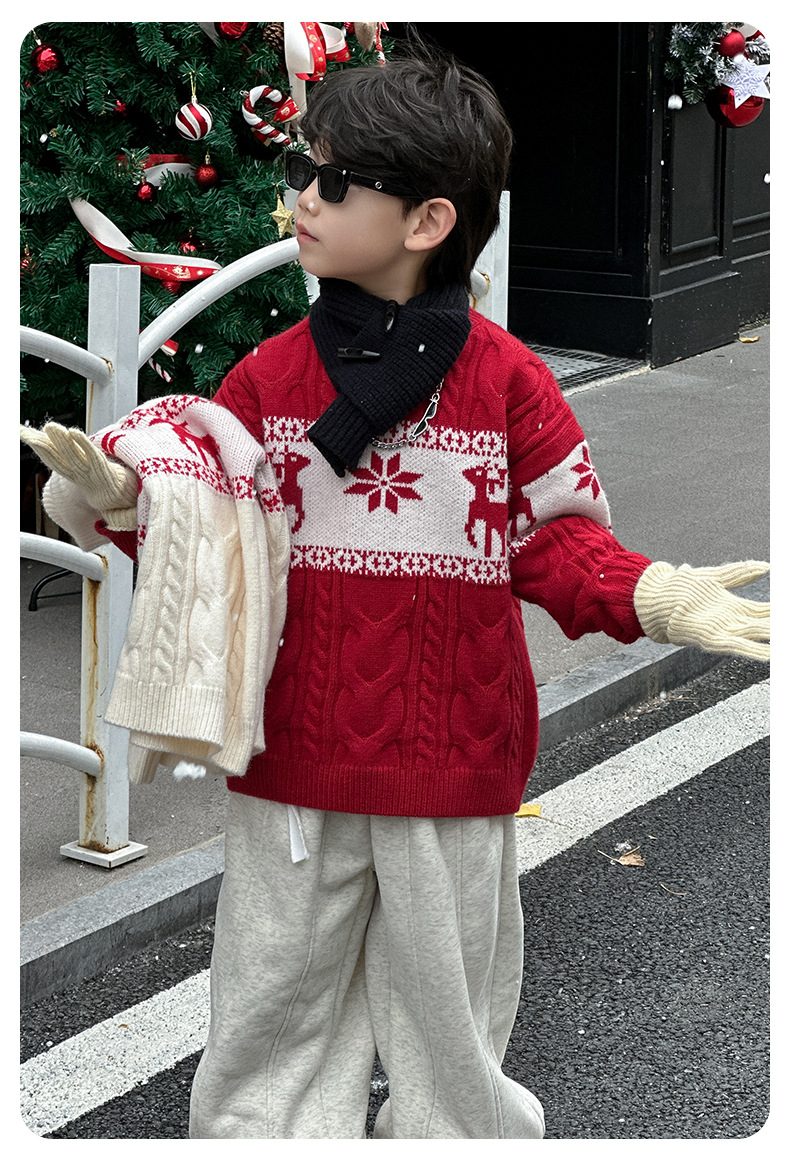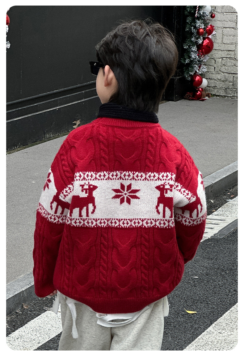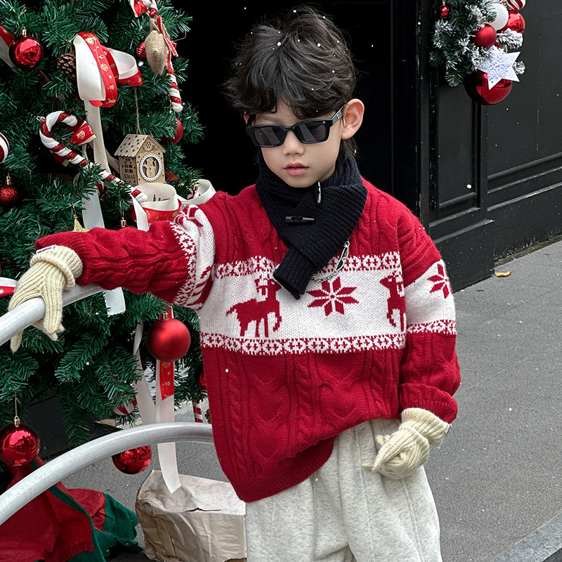 어린이 서양식 따뜻한 스웨터 2024 겨울 새 소년 붉은 만화 신년 서비스 가을과 겨울 스웨터스토어 가기