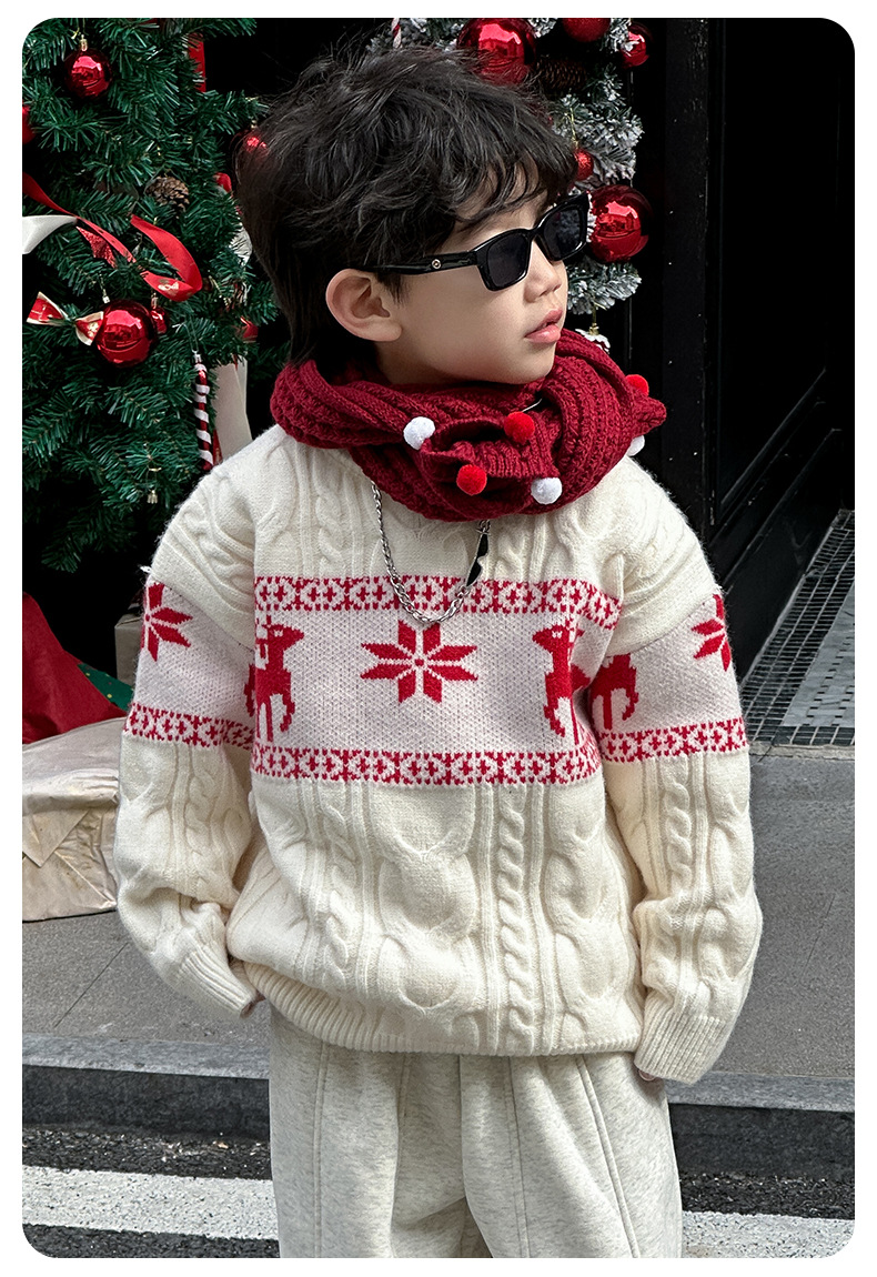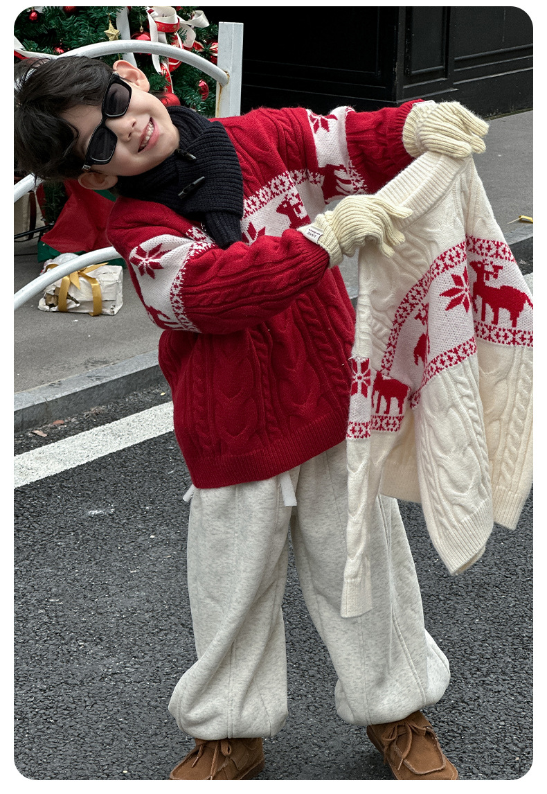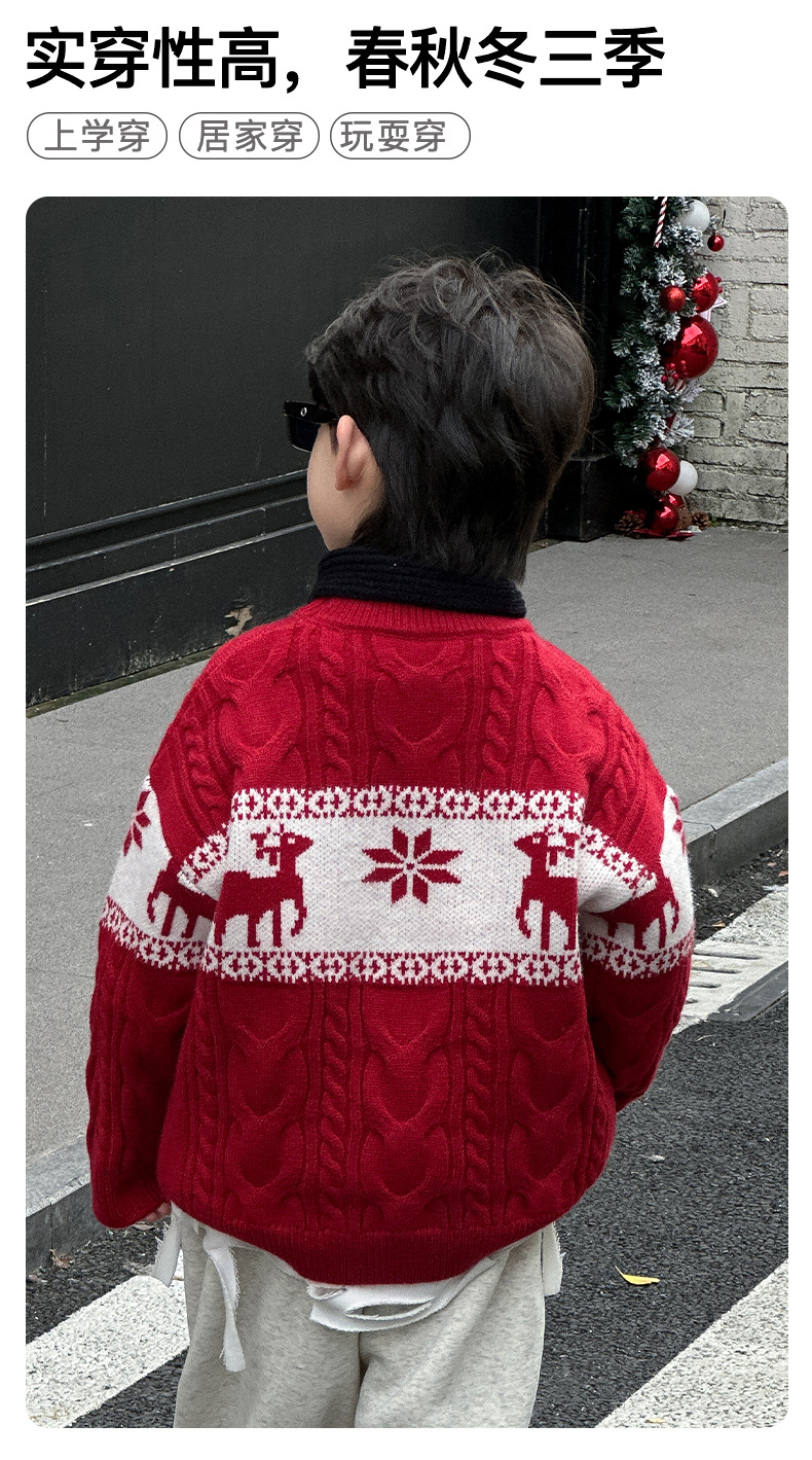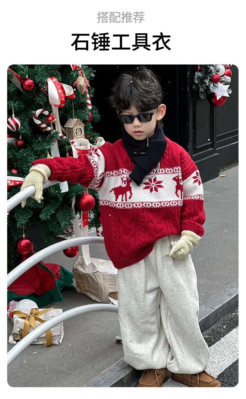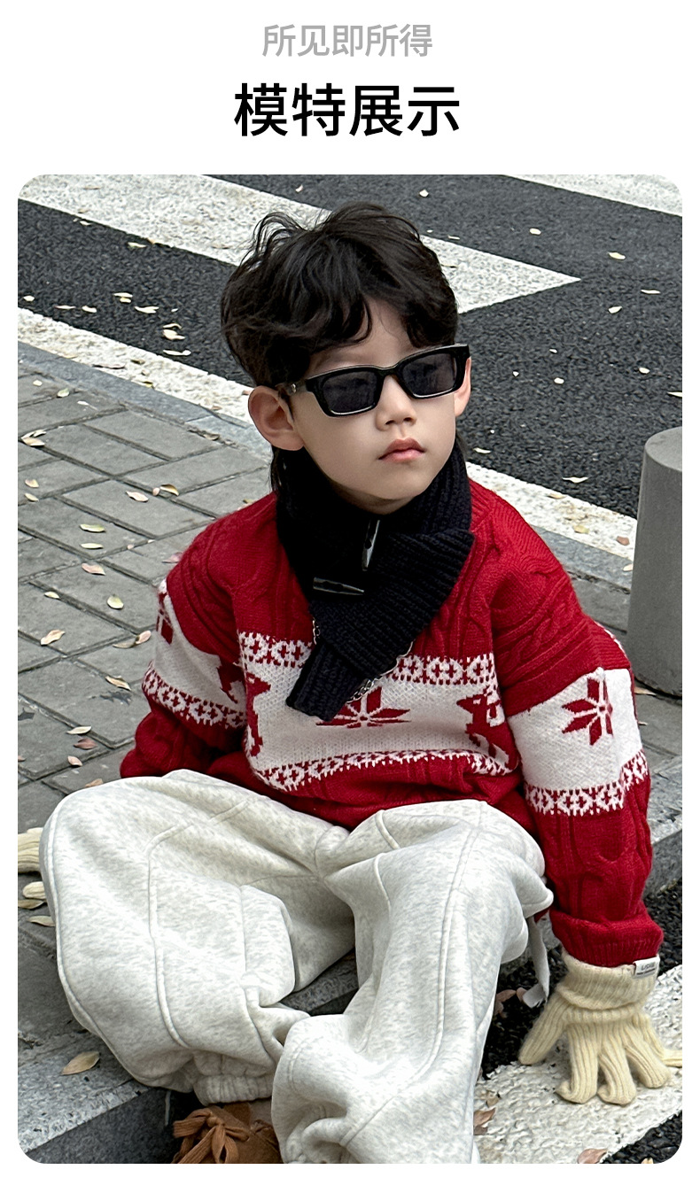 어린이 서양식 따뜻한 스웨터 2024 겨울 새 소년 붉은 만화 신년 서비스 가을과 겨울 스웨터스토어 가기