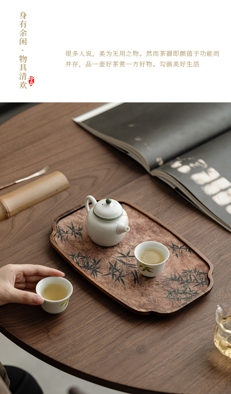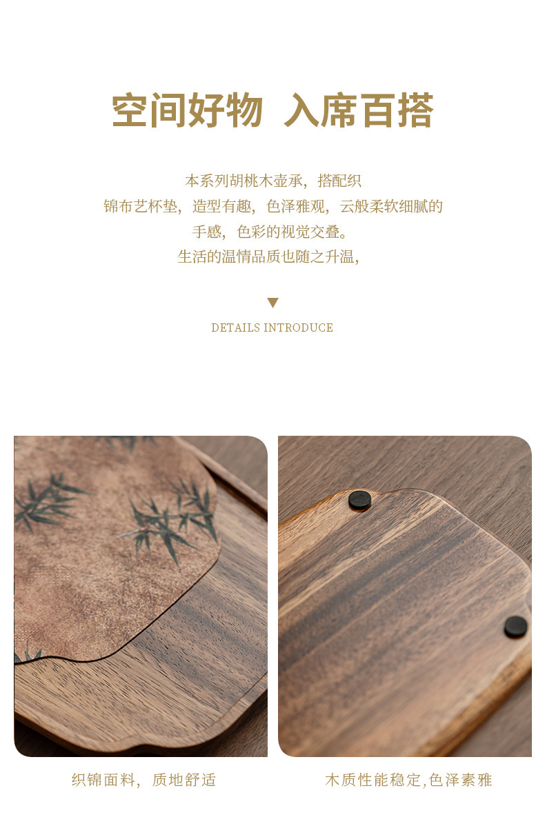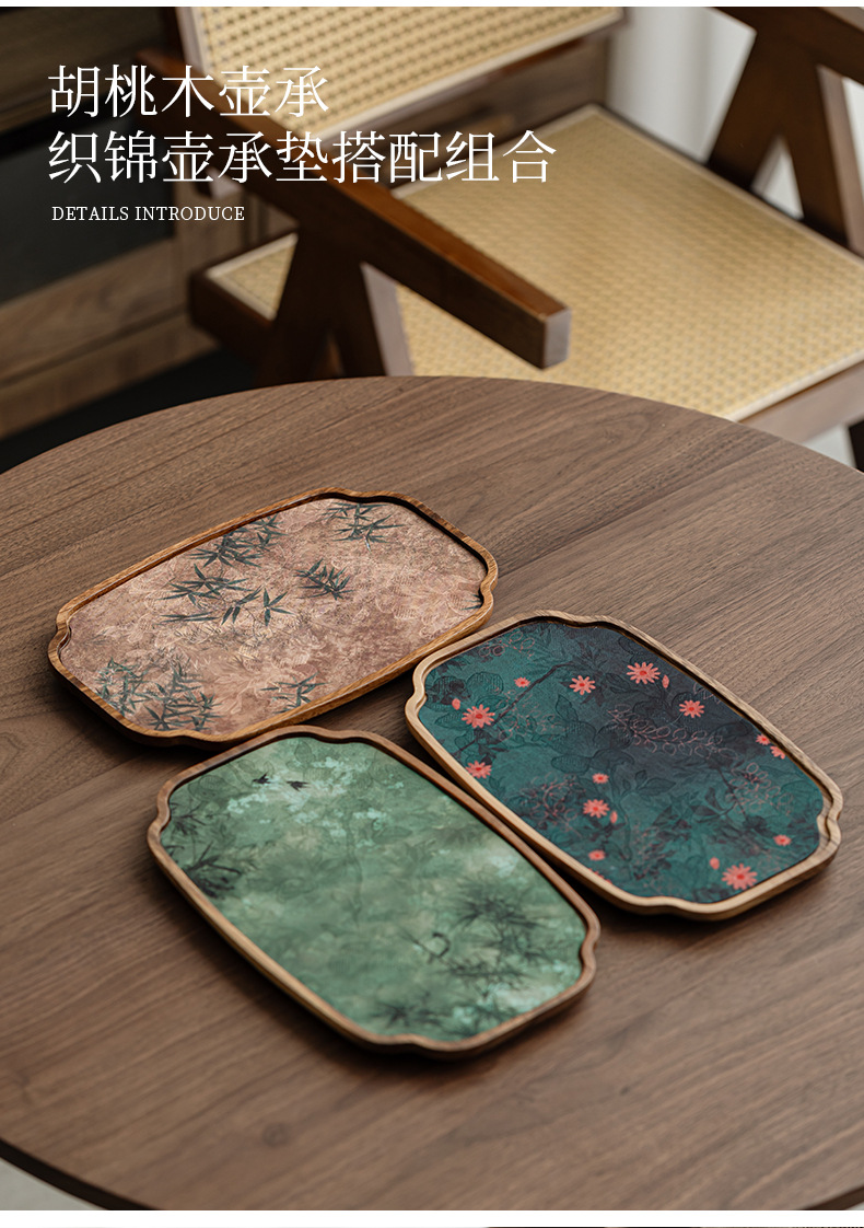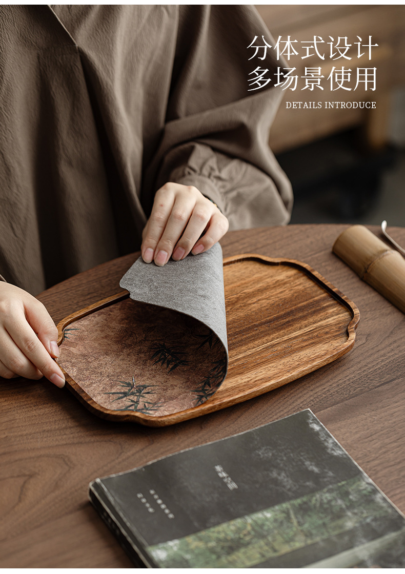 호두 차 트레이 작은 단단한 나무 차 테이블 절묘한 차 세트 저장 트레이 냄비 건조한 양조 테이블 방수 차 매트
