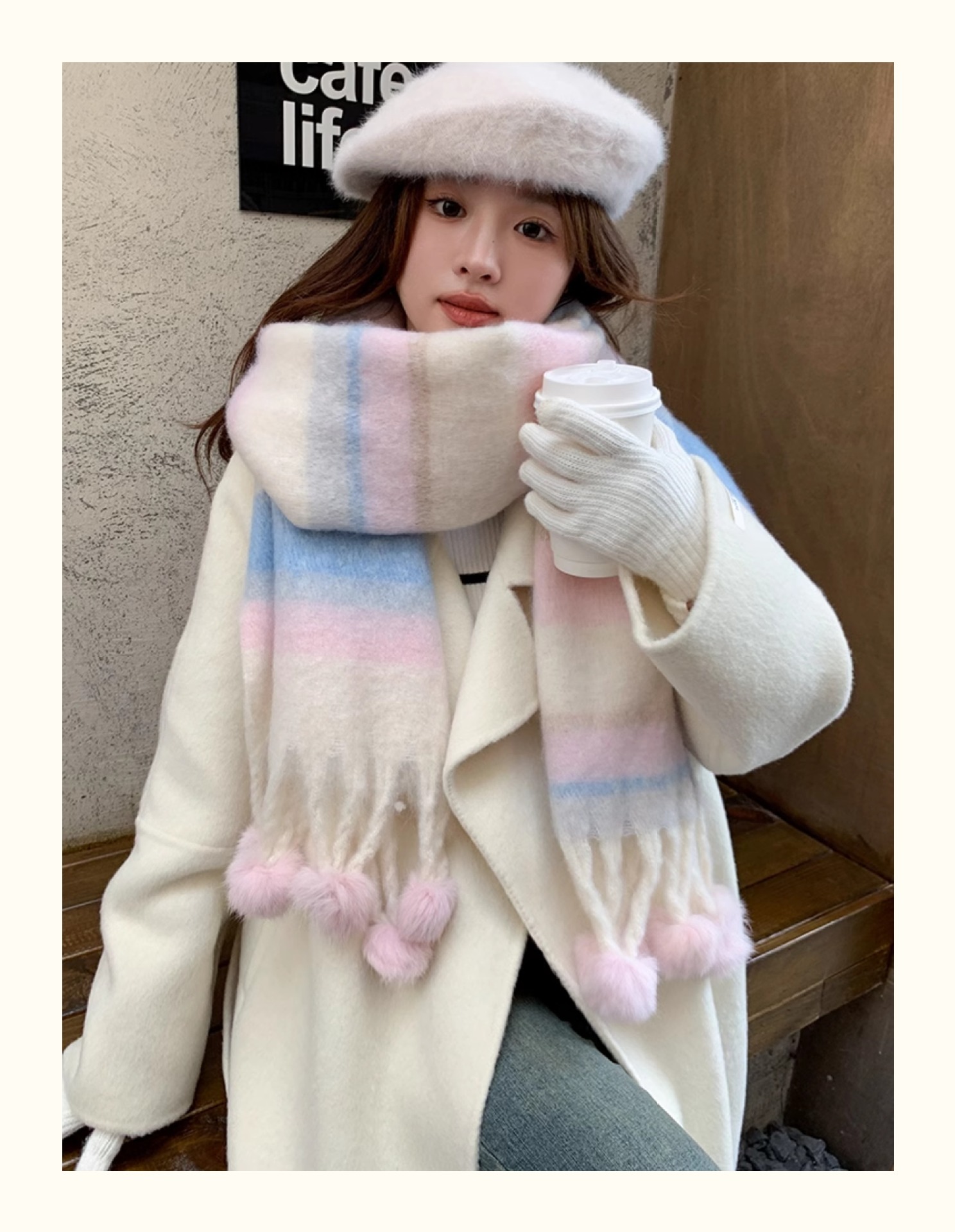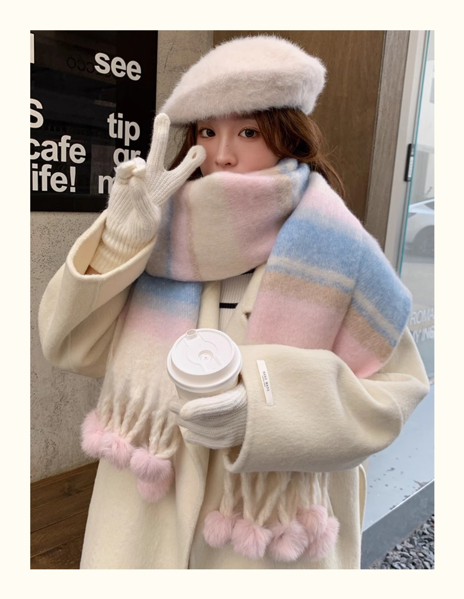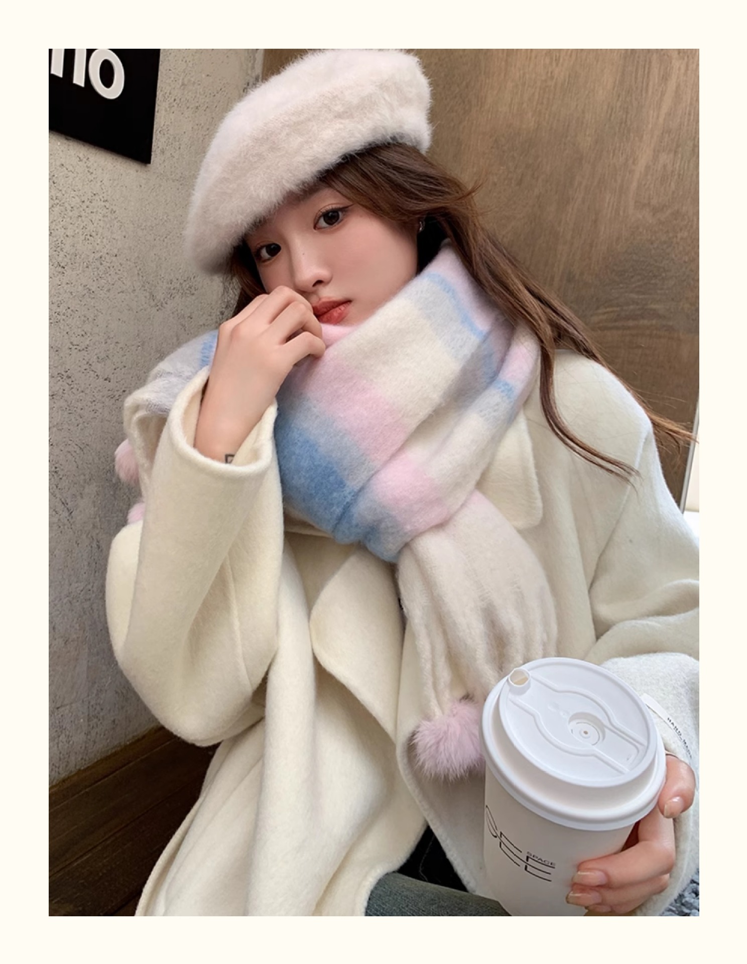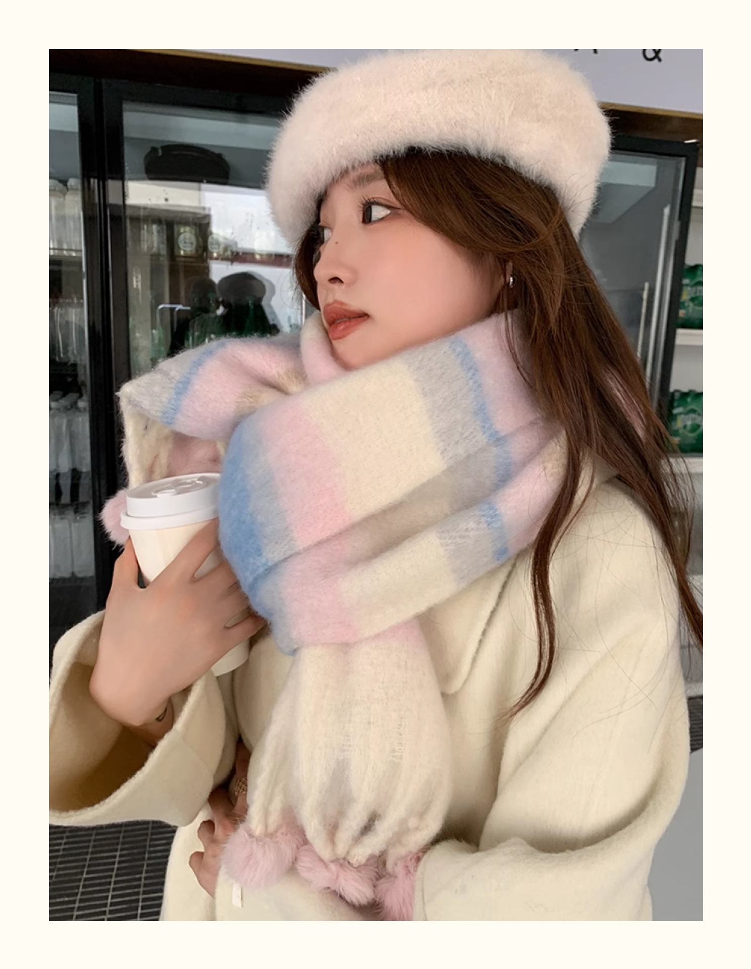 마카롱 컬러 시리즈 ~ 한국 패션 조커 여성 컬러 매칭 따뜻한 모피 볼 스카프 일본 도파민 소프트 왁스 숄스토어 가기