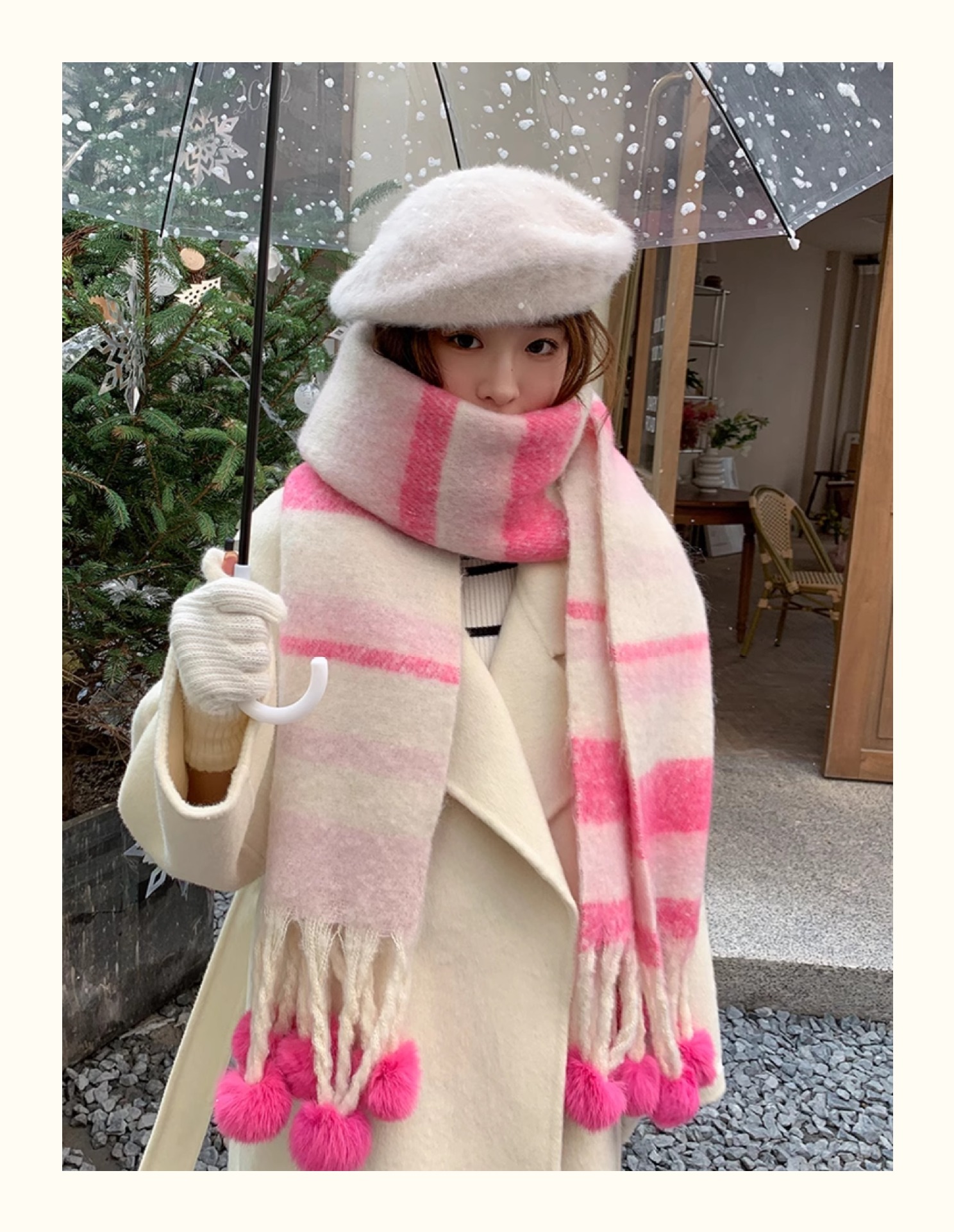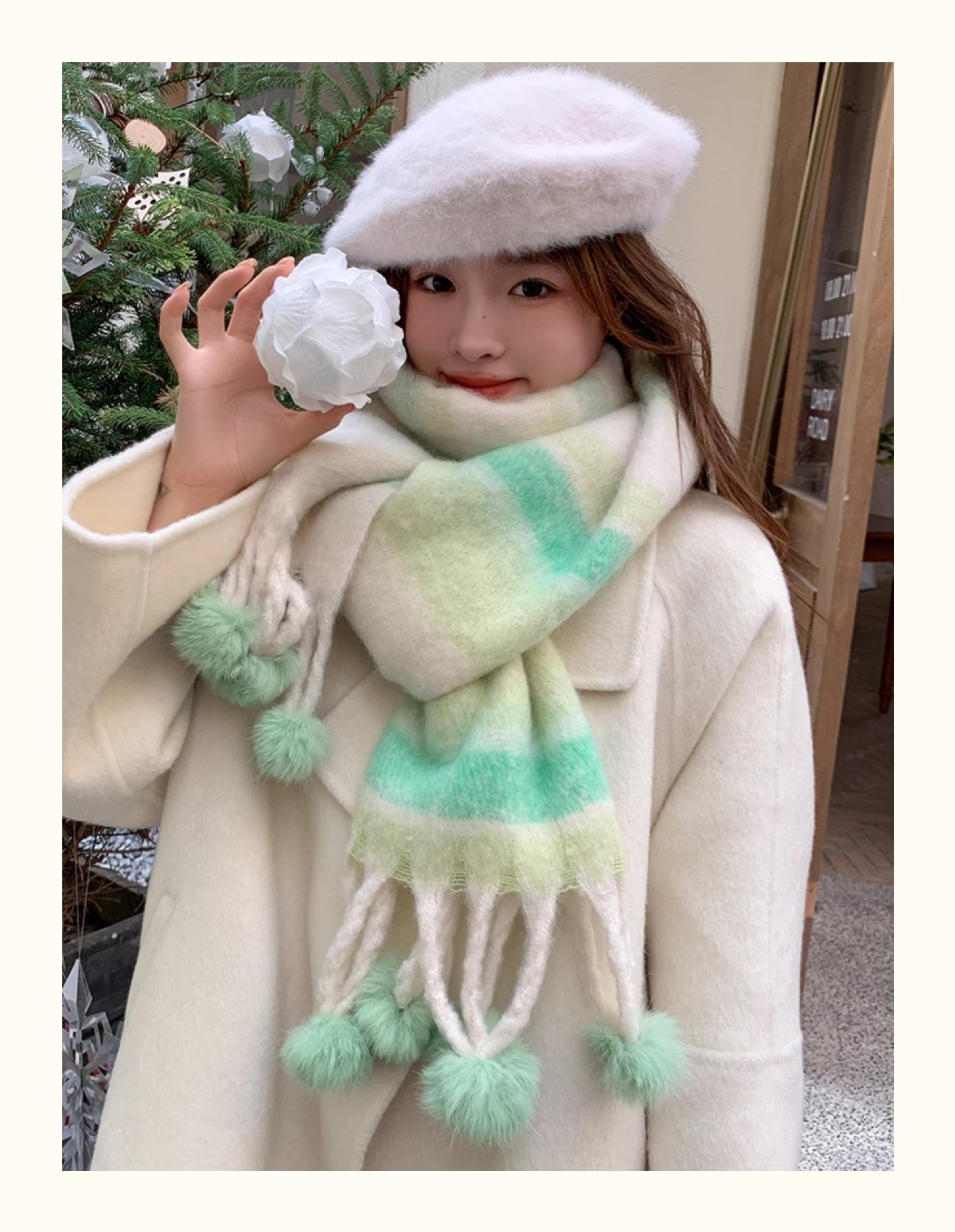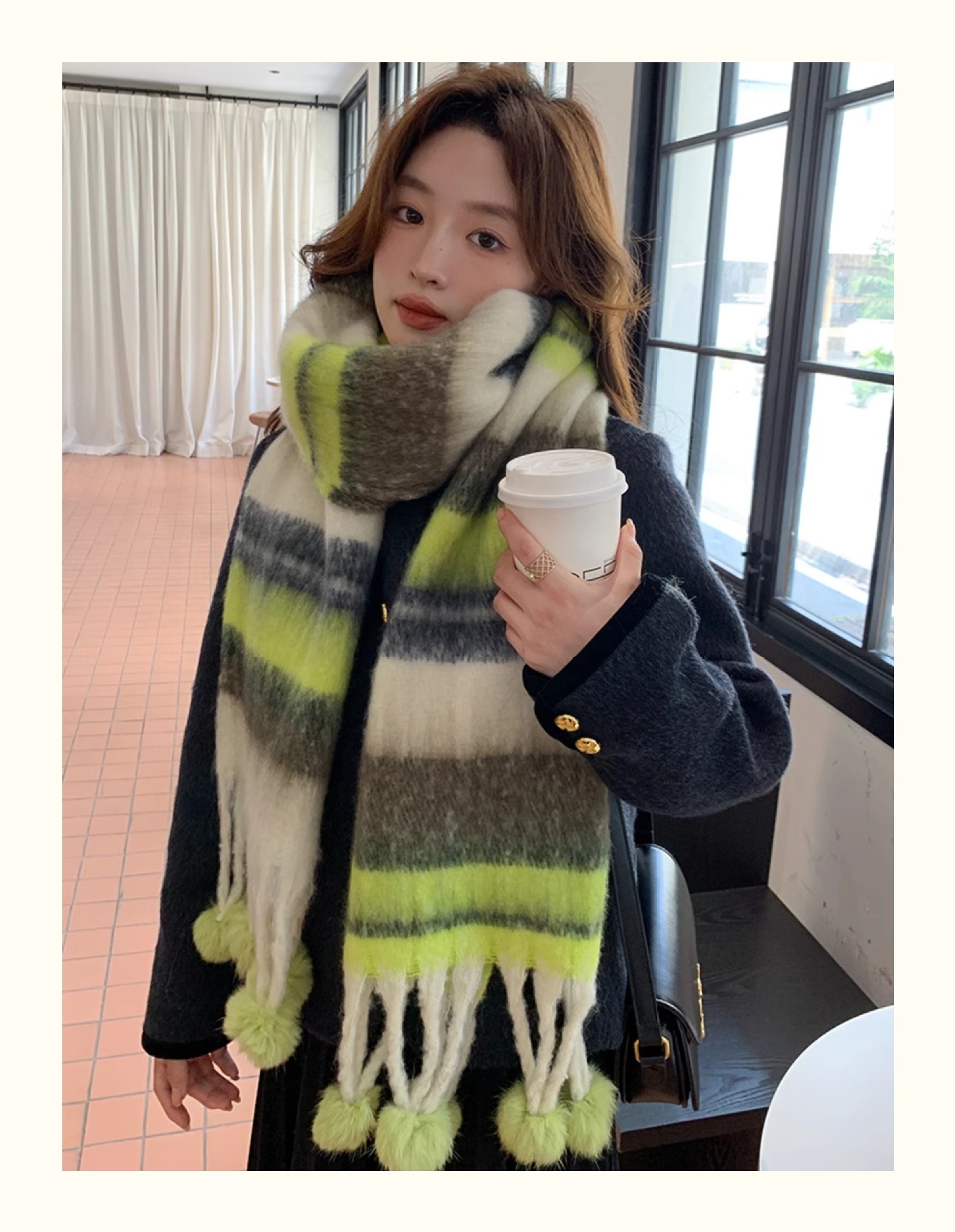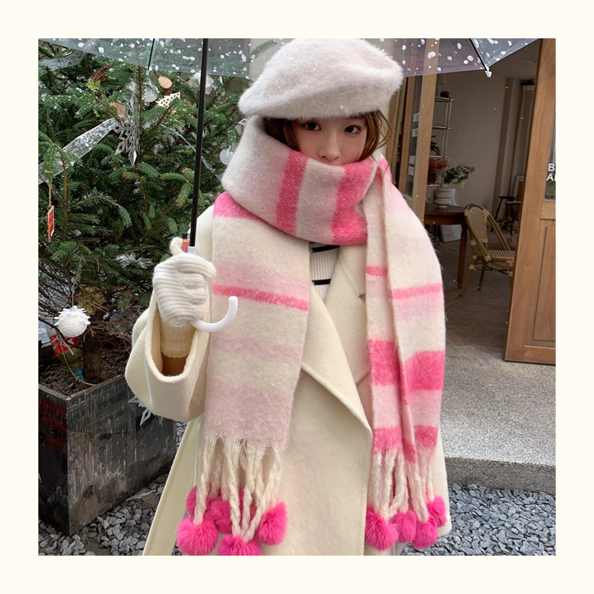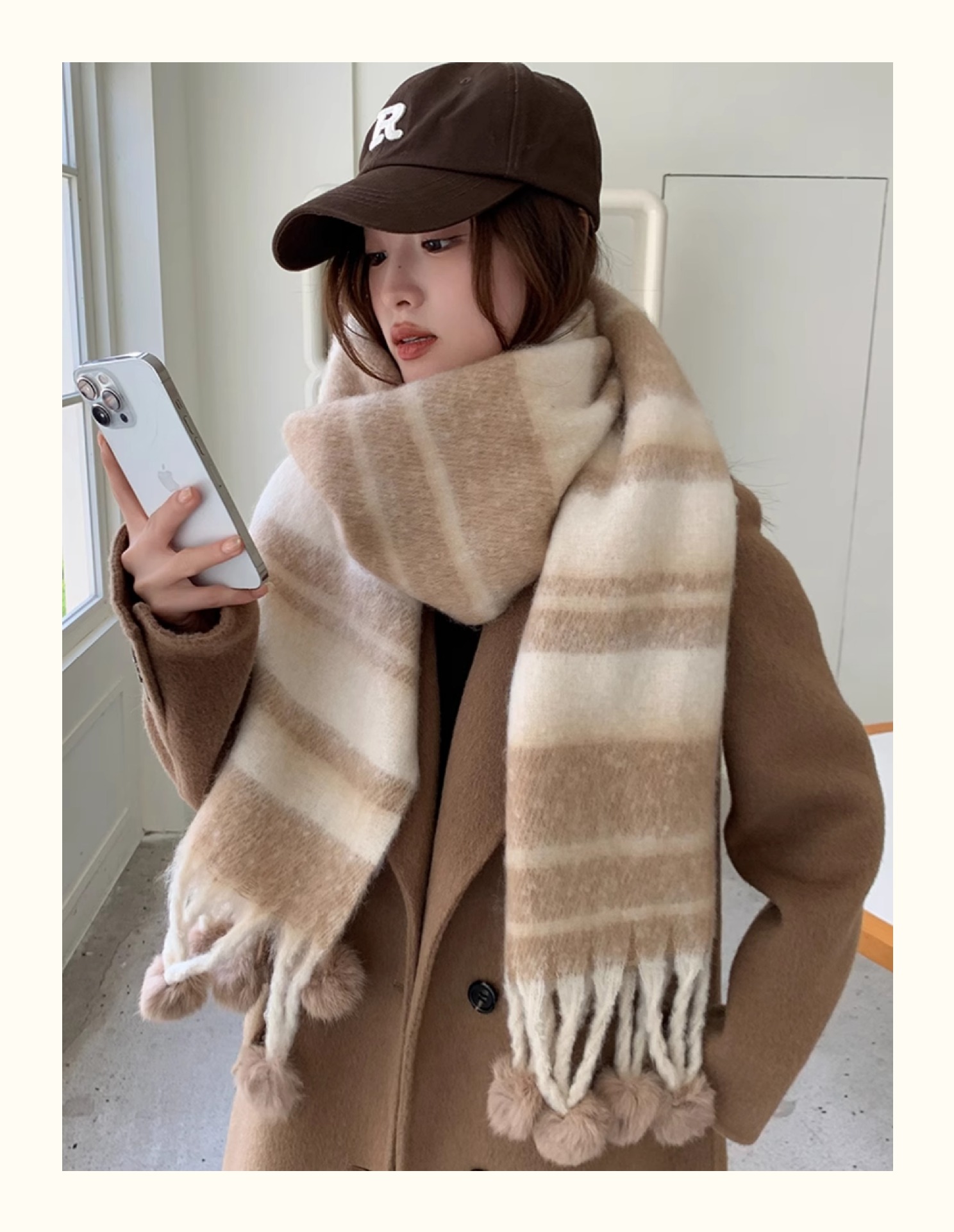 마카롱 컬러 시리즈 ~ 한국 패션 조커 여성 컬러 매칭 따뜻한 모피 볼 스카프 일본 도파민 소프트 왁스 숄스토어 가기