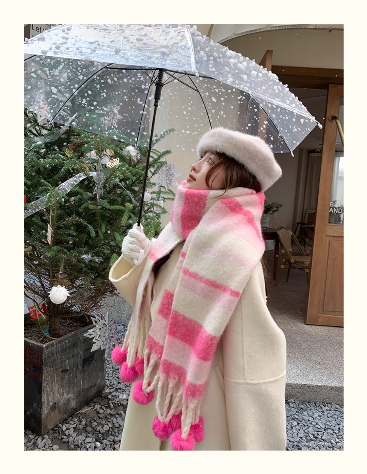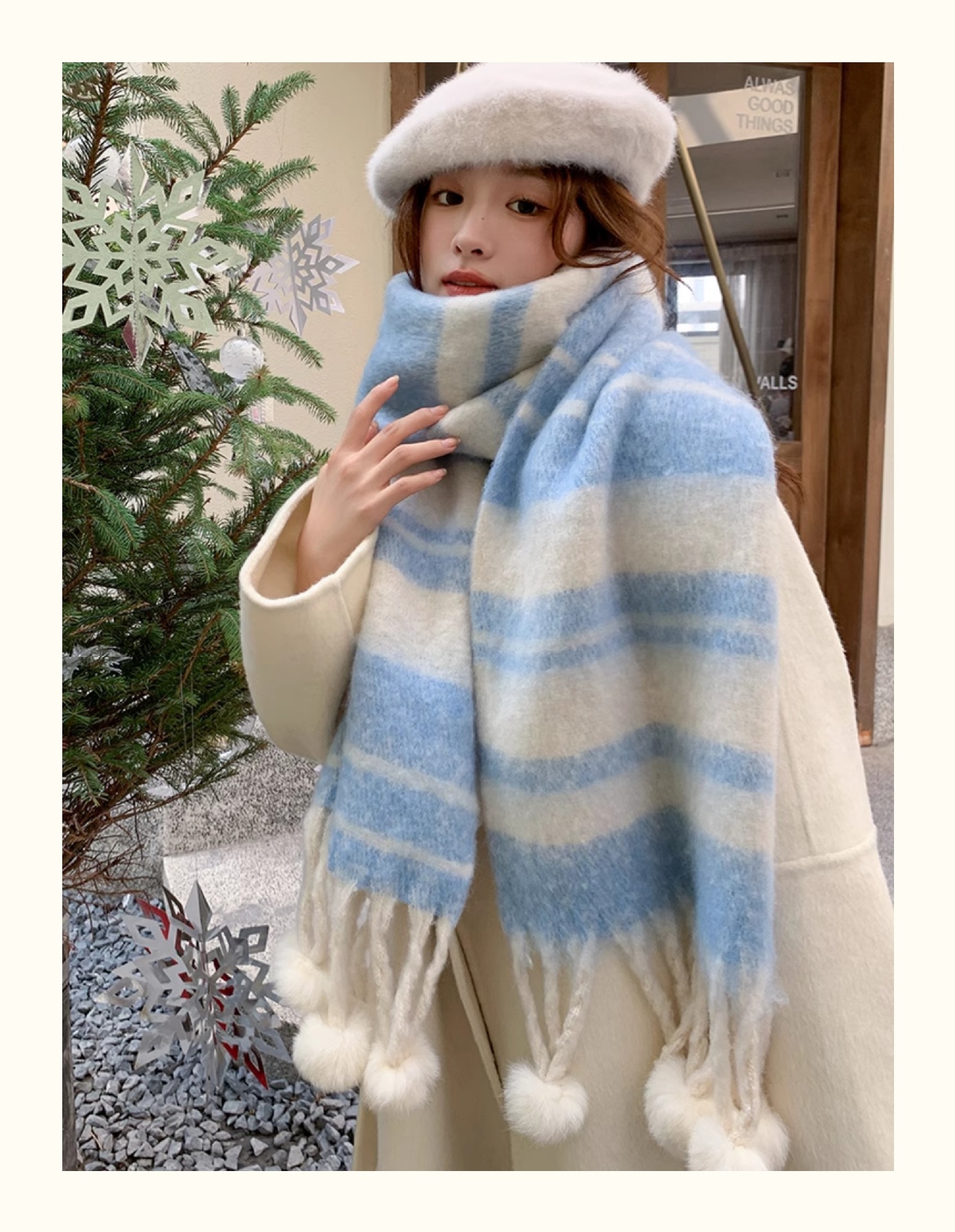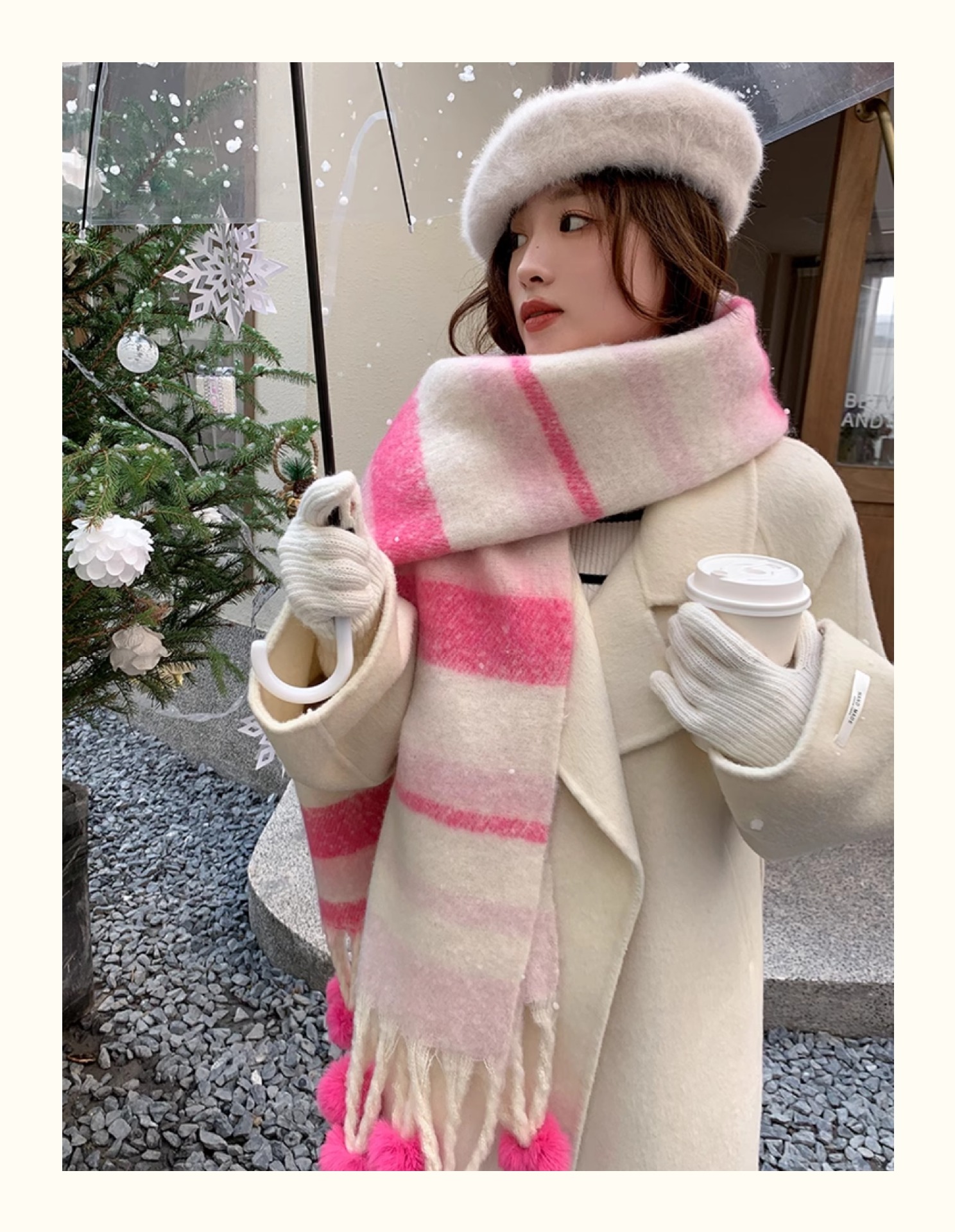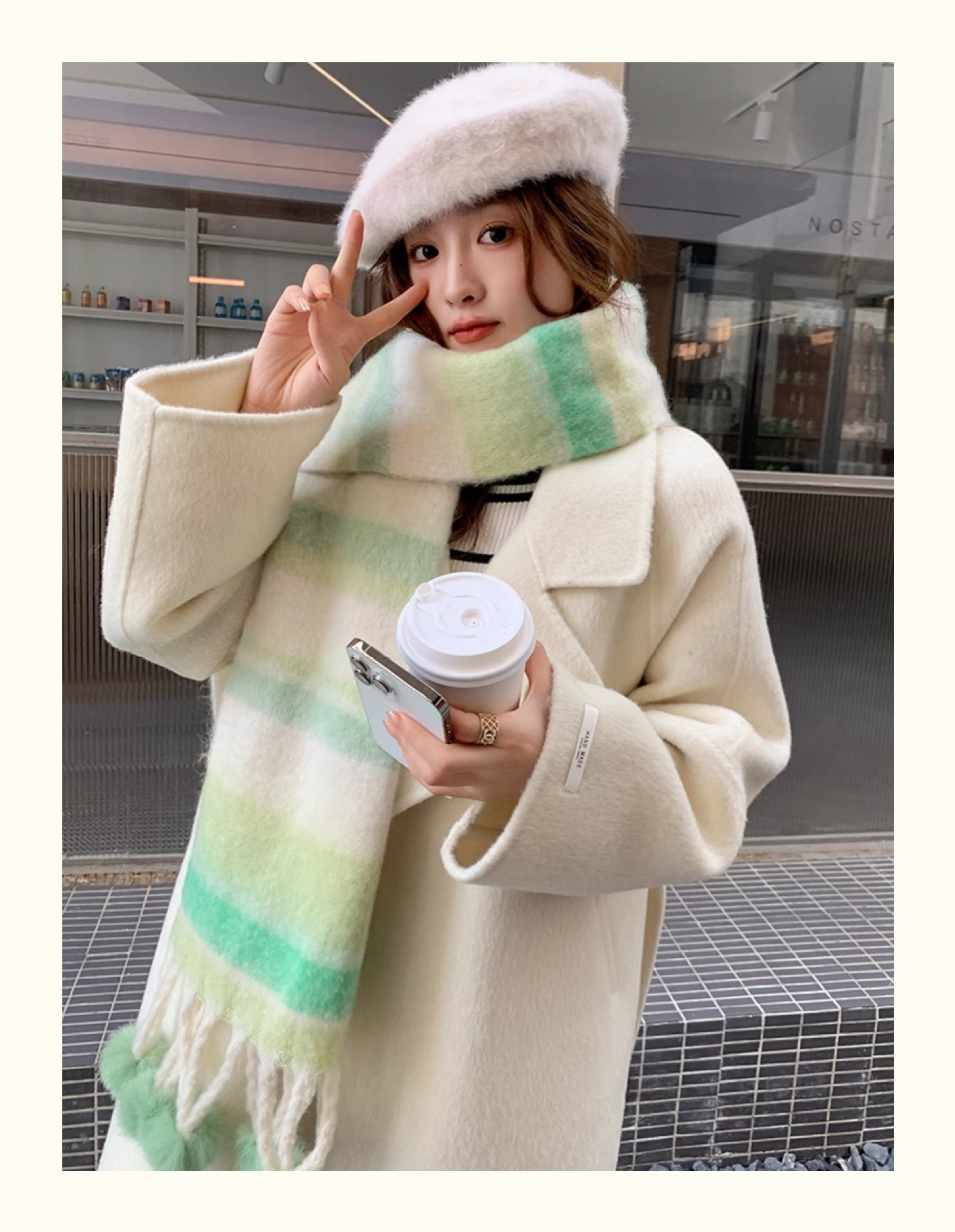 마카롱 컬러 시리즈 ~ 한국 패션 조커 여성 컬러 매칭 따뜻한 모피 볼 스카프 일본 도파민 소프트 왁스 숄스토어 가기