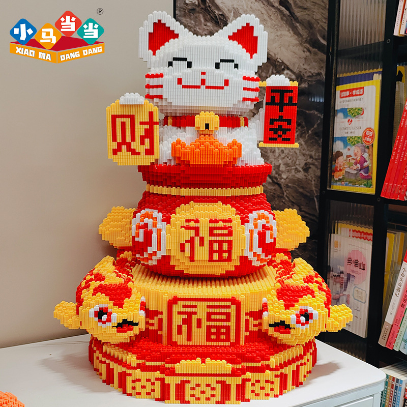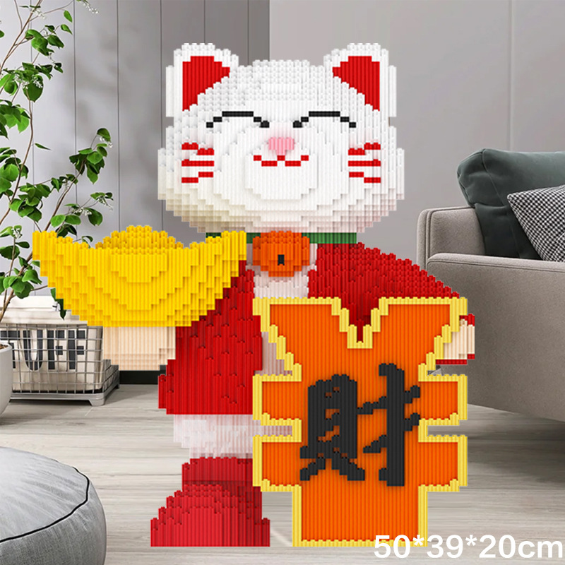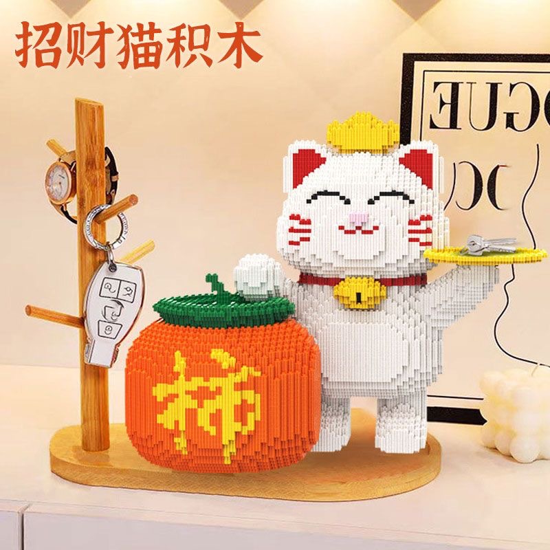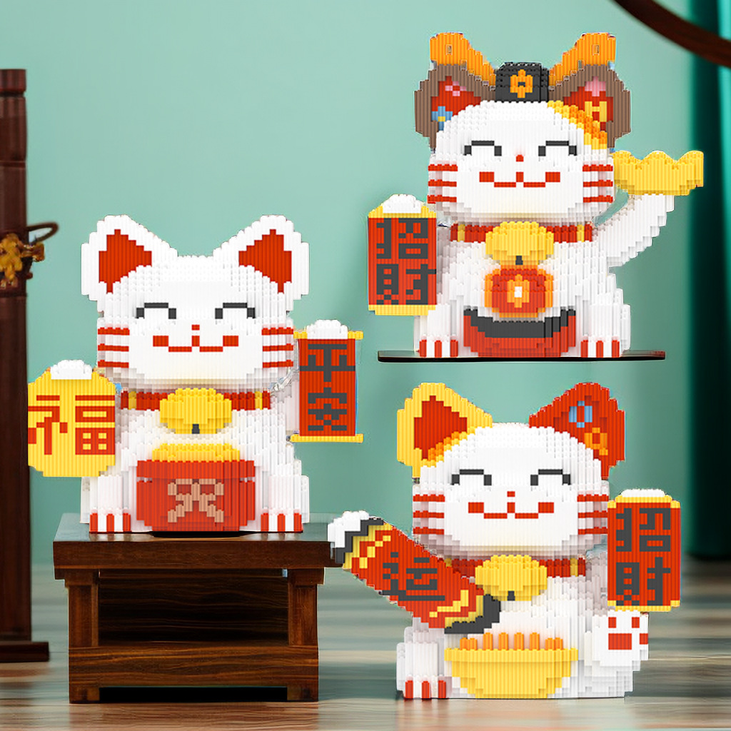 레고 새로운 행운의 고양이 작은 입자 퍼즐 조립 장난감 퍼즐 장식품 성인 어린이 생일 선물로 호환스토어 가기