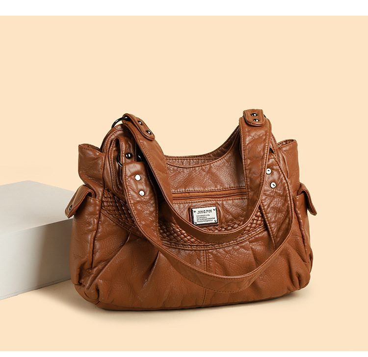 핸드백 어깨 가방 새로운 하이 엔드 여성 가방 복고풍 세척 가죽 짠 가방 국경 간 폭발 대용량 유럽과 미국스토어 가기