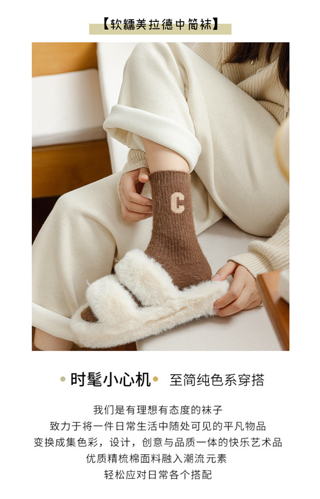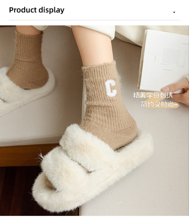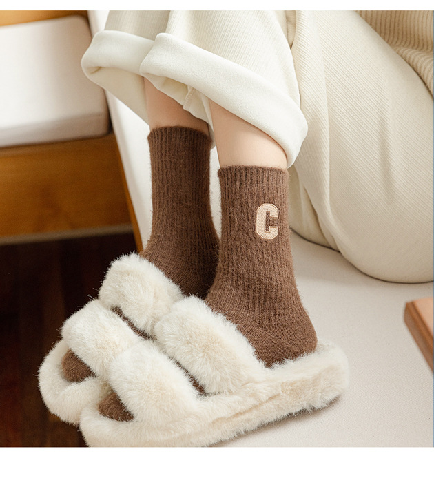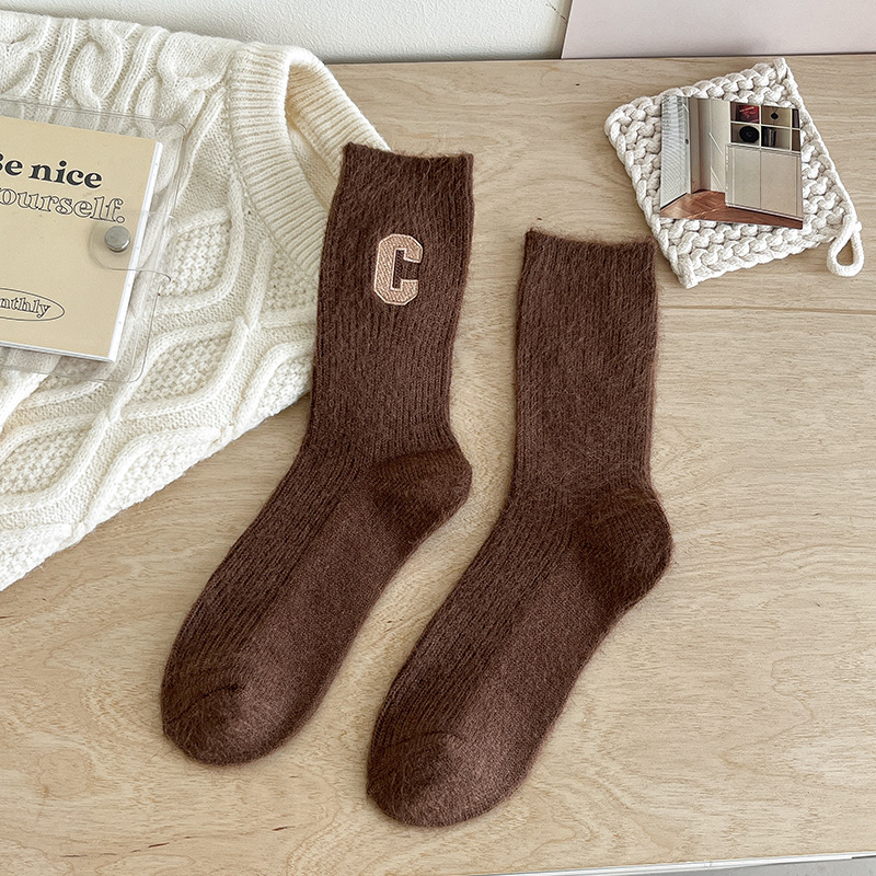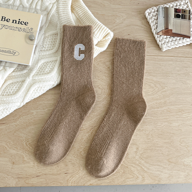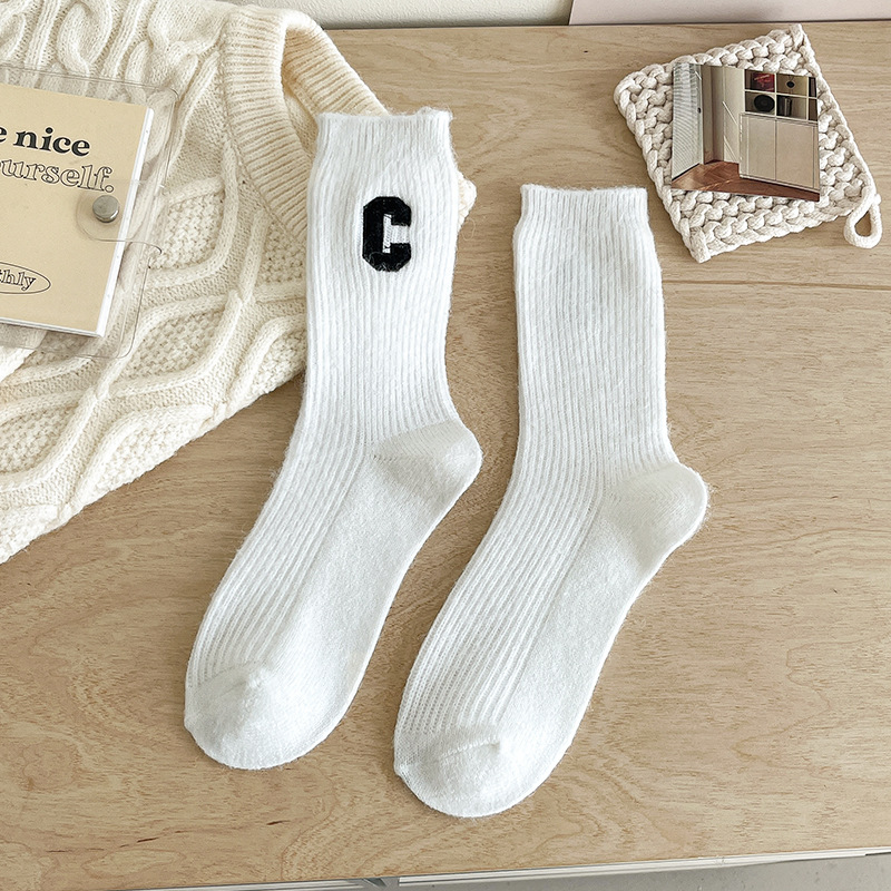 쌓인 양말 여성용 가을과 겨울 양모 미드 튜브 양말 트렌디 한 따뜻한 두꺼운 기모 부드러운 왁스 문 양말 C 편지 여성용 양말스토어 가기
