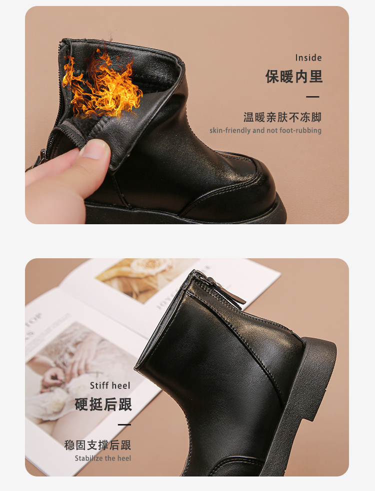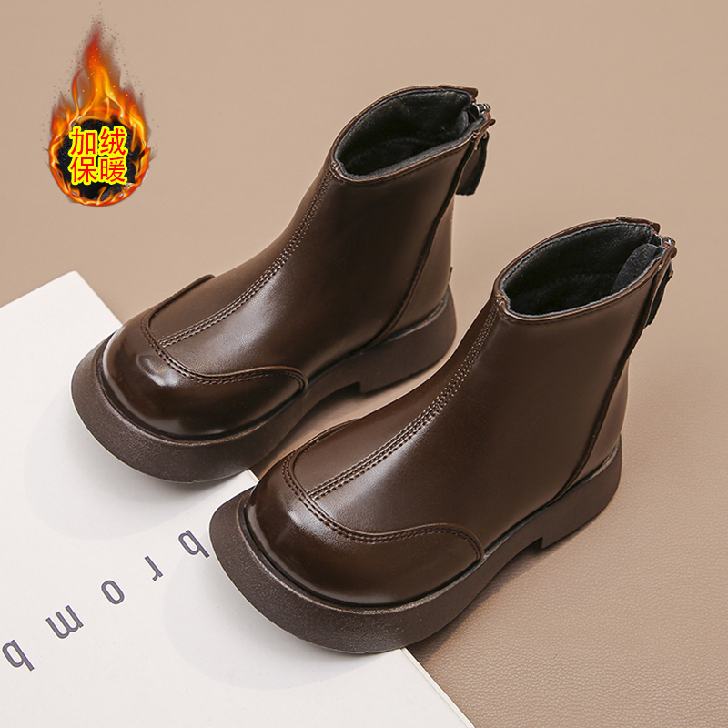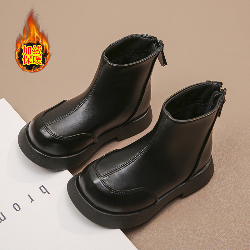 정품 가죽 여아 부츠 공주 스타일 플러스 벨벳 숏부츠 2025 신상 가을 겨울 아동 영국 스타일 마틴 부츠 따뜻한 가죽 부츠스토어 가기