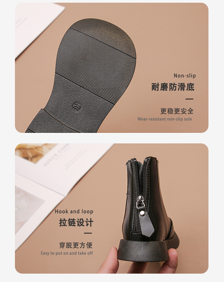 정품 가죽 여아 부츠 공주 스타일 플러스 벨벳 숏부츠 2025 신상 가을 겨울 아동 영국 스타일 마틴 부츠 따뜻한 가죽 부츠