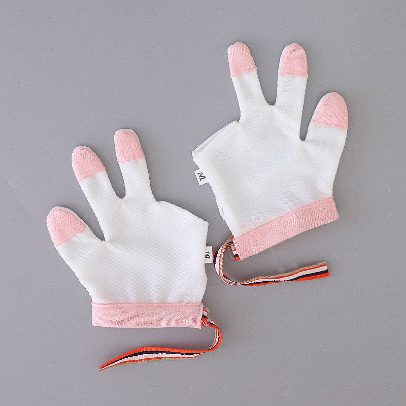 엄지 집게 손가락 가운데 손가락 반지 먹는 손 아기 아이들의 반 먹는 손 빨기 손 장갑 못을 갉아 먹는 안티 드래그 장갑 곧게