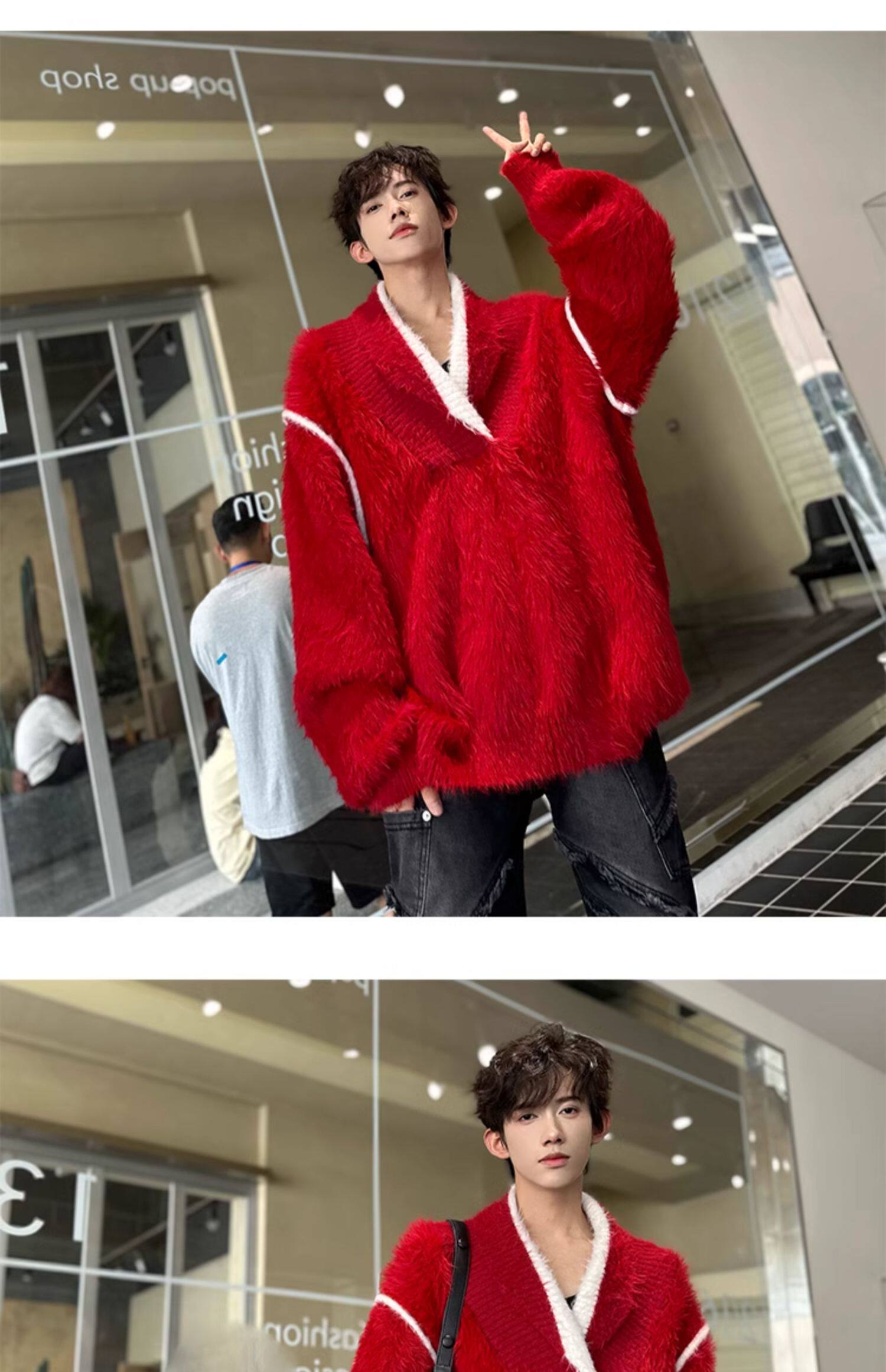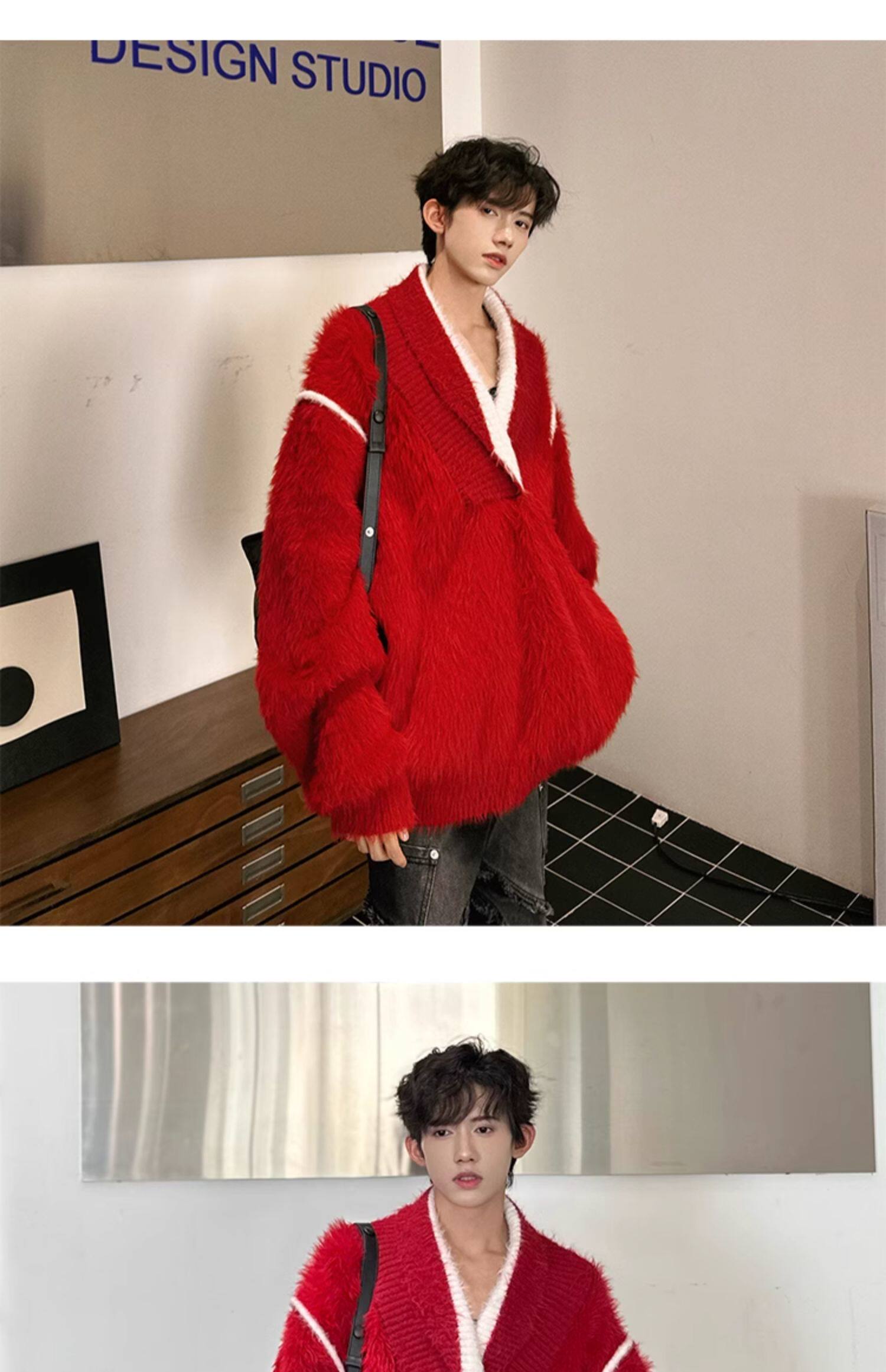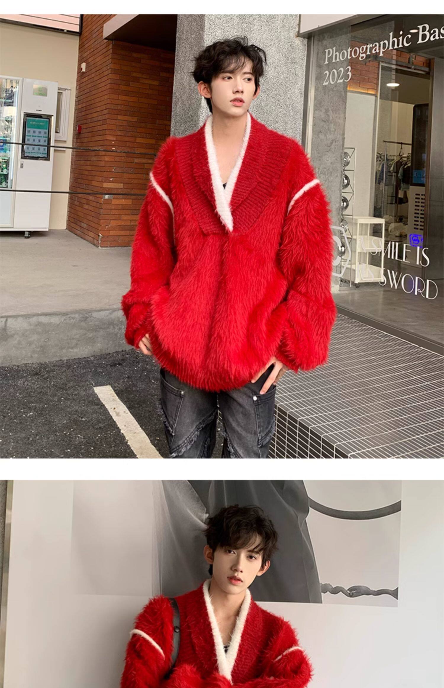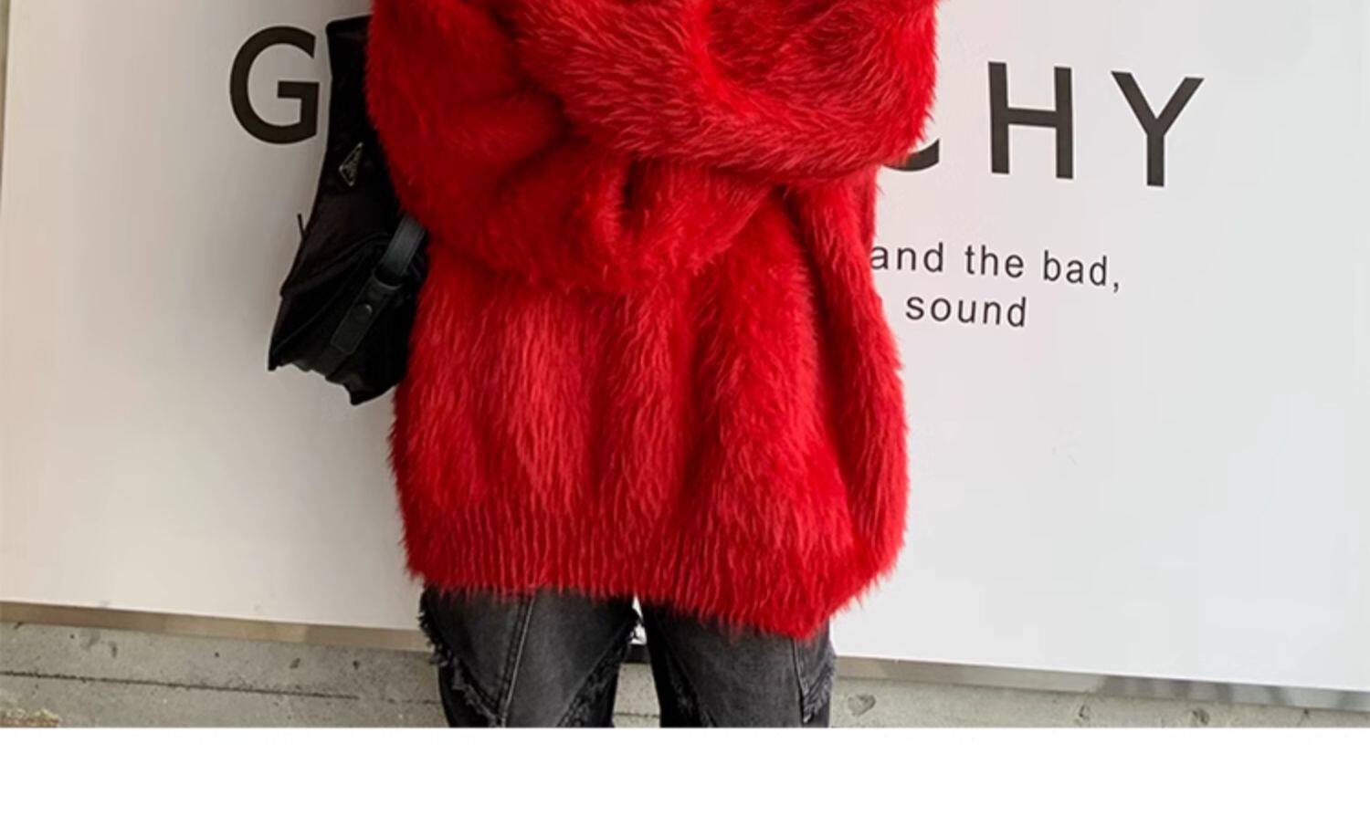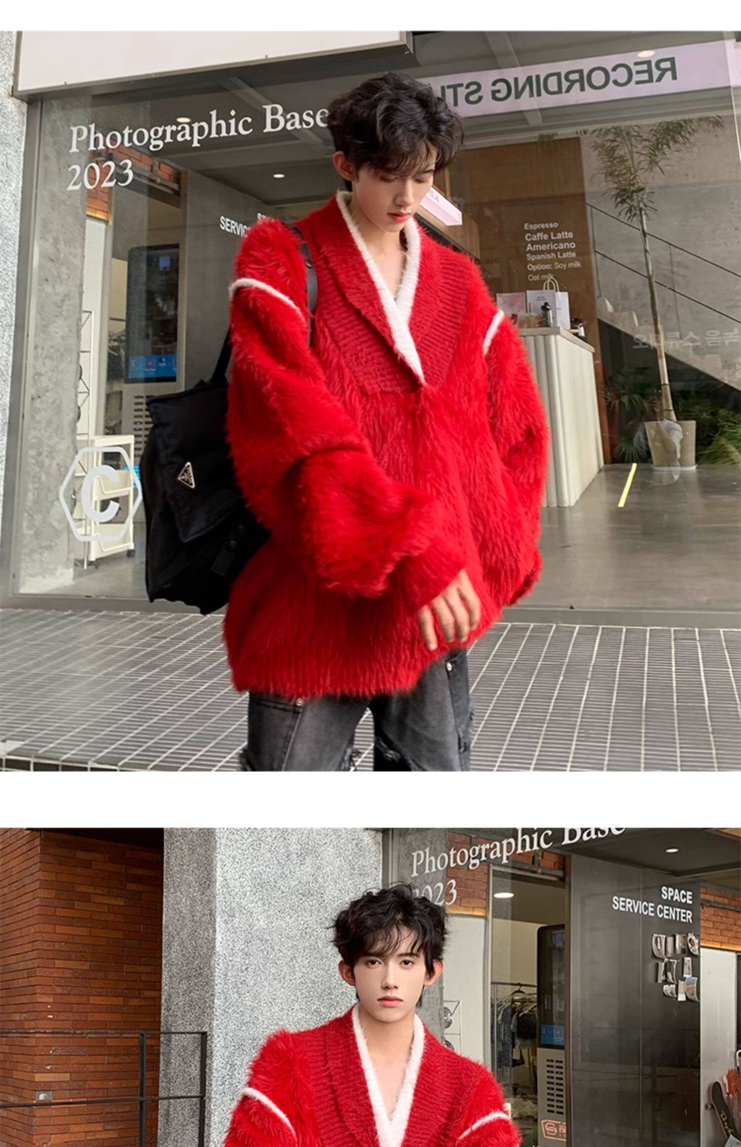 마우 머리 빨간 스웨터 남자 크리스마스 착용 가운 니트웨어 게으른 스타일 커플의 하이 엔드 겨울 코트