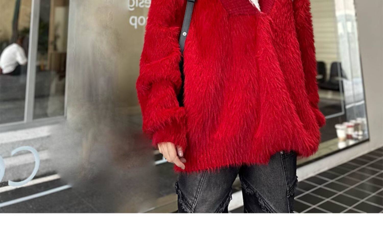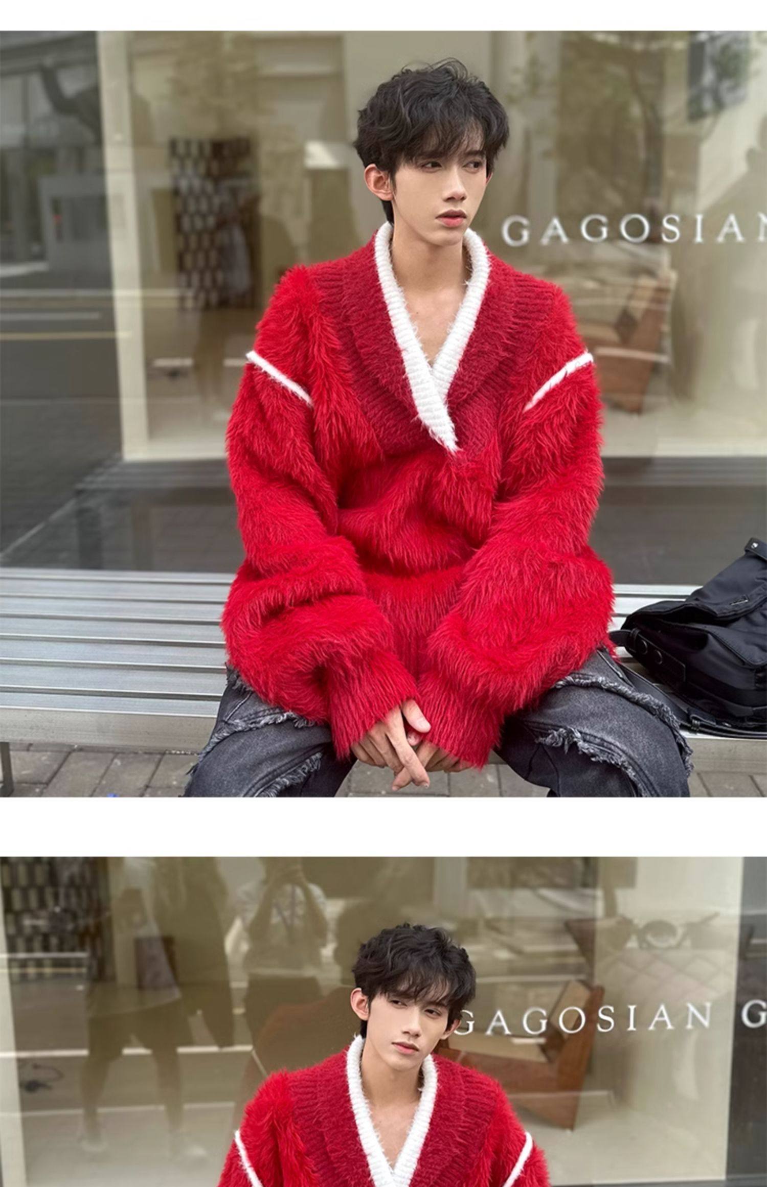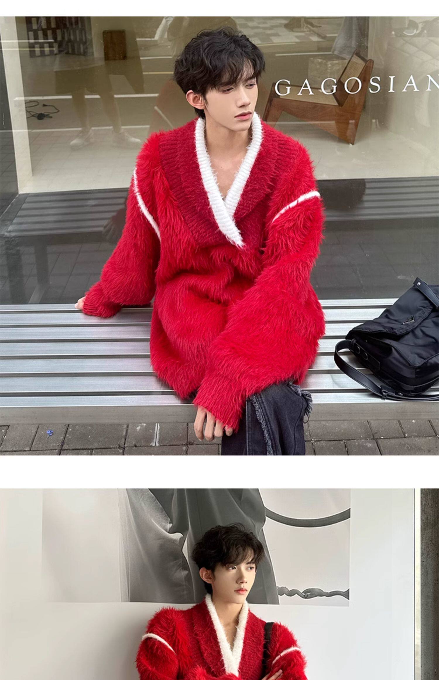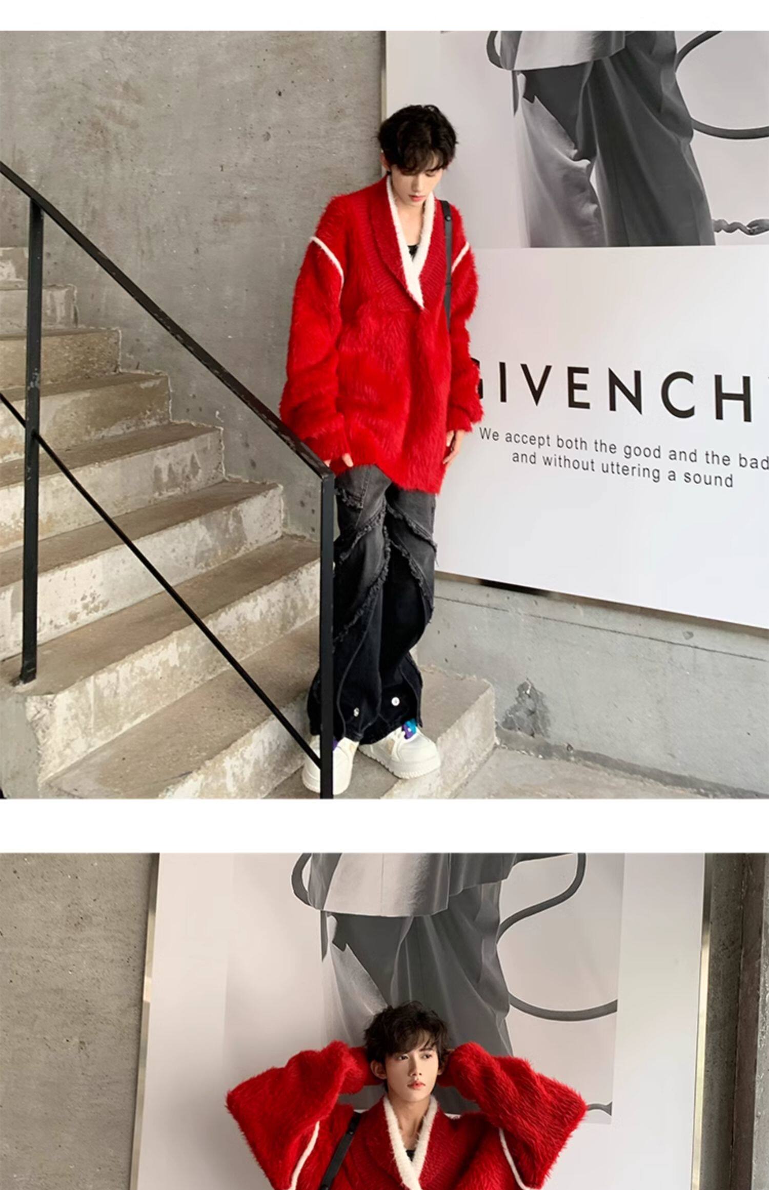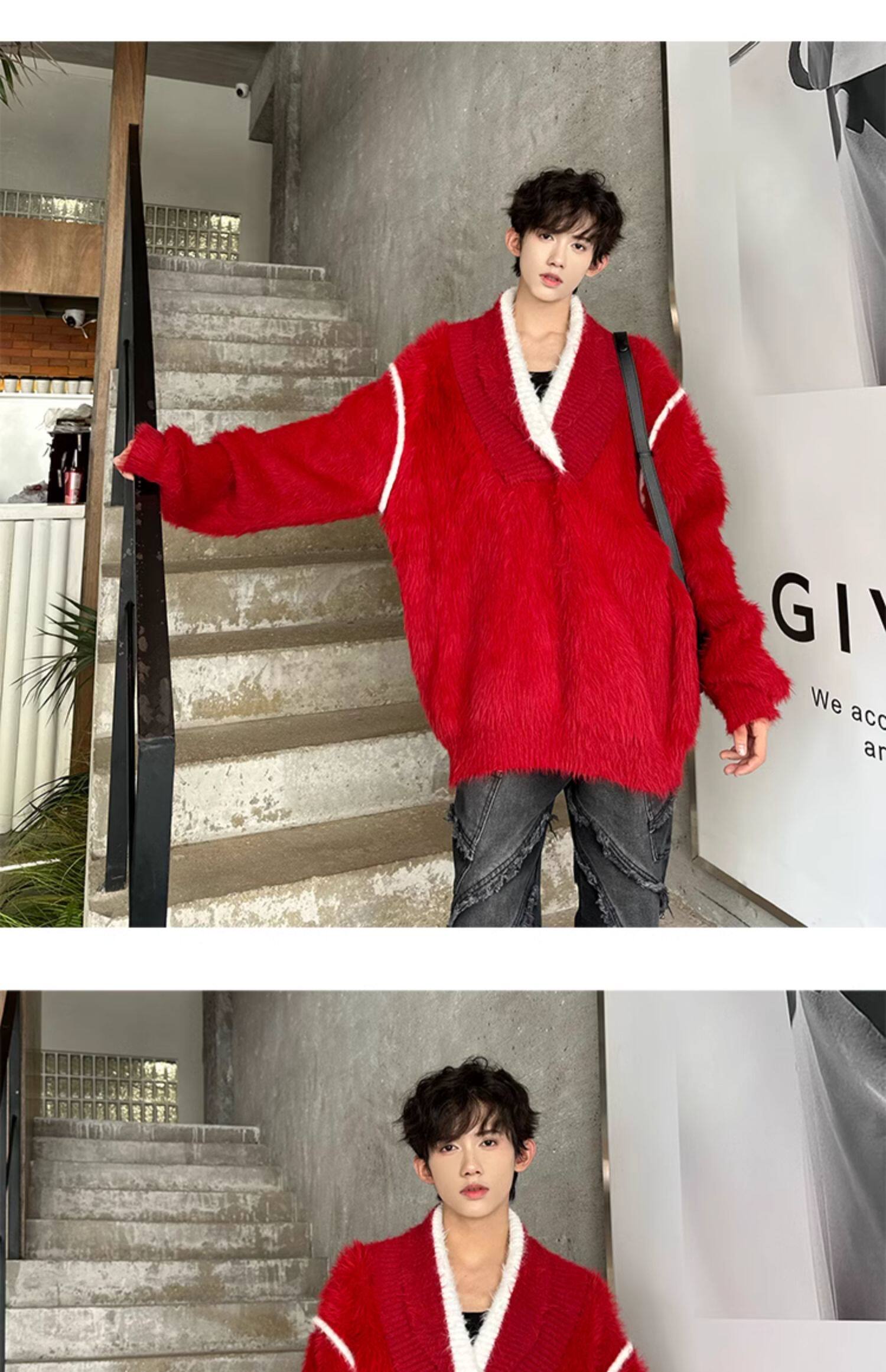 마우 머리 빨간 스웨터 남자 크리스마스 착용 가운 니트웨어 게으른 스타일 커플의 하이 엔드 겨울 코트